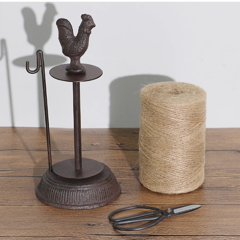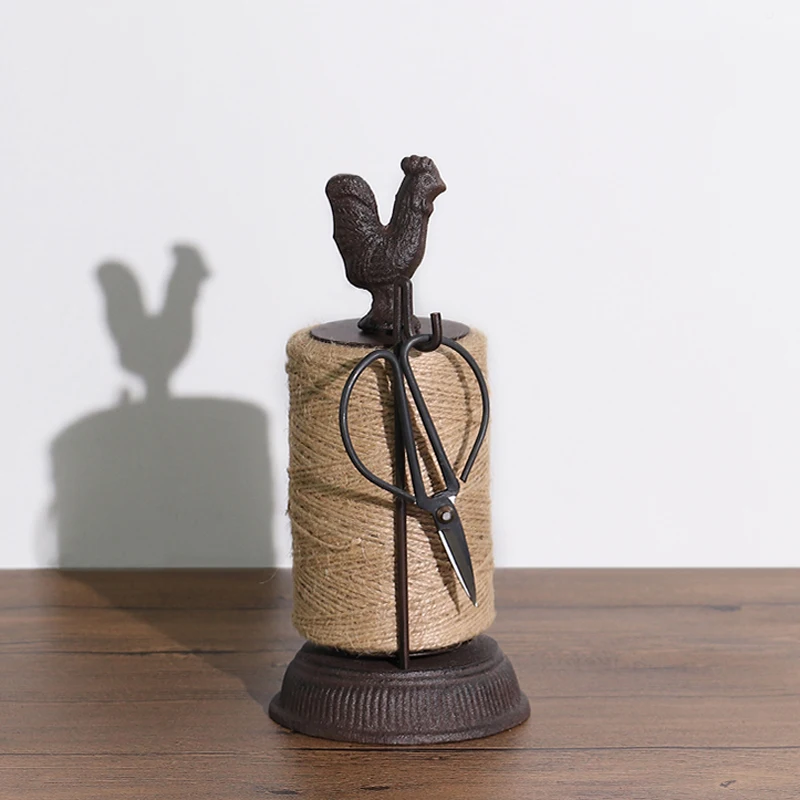 Античный большой петух в деревенском стиле, чугунный держатель рулона пеньковой веревки с ножницами, фигурки, Европейский Декор для дома и сада, статуи животных