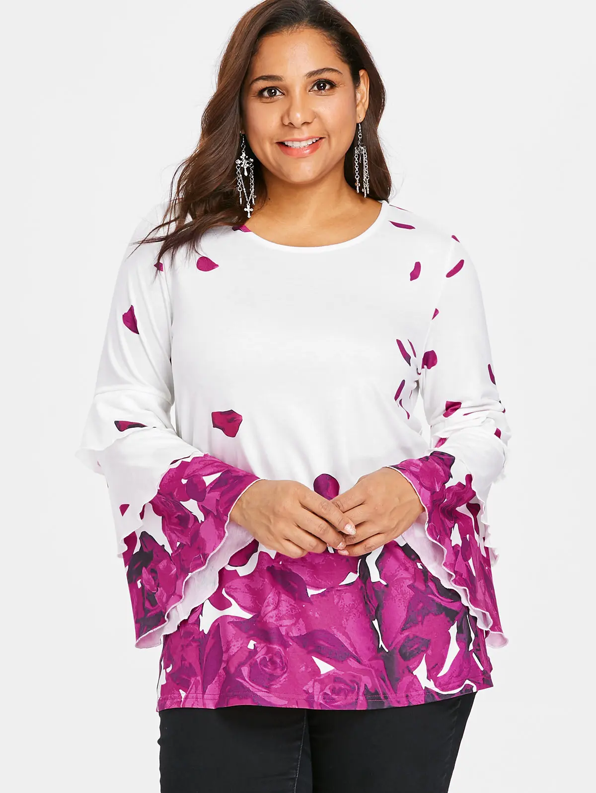 Женская блузка с цветочным рисунком Wipalo, блузка с расклешенными рукавами и многослойным рукавом с лепестками роз, большие размеры 5XL