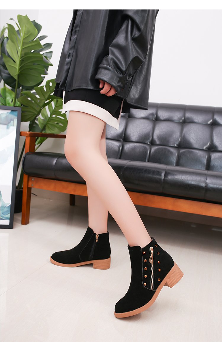 Черно белые женские ботинки Удобные ботильоны на высоком квадратном каблуке