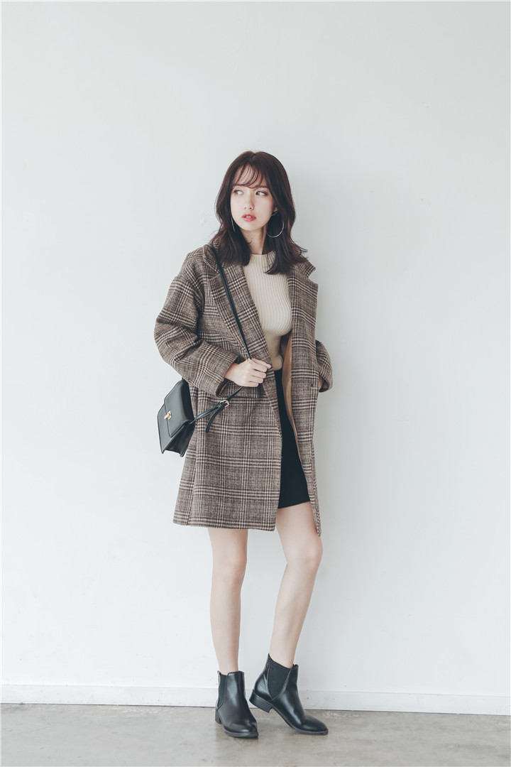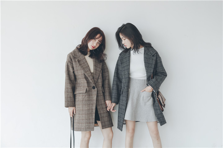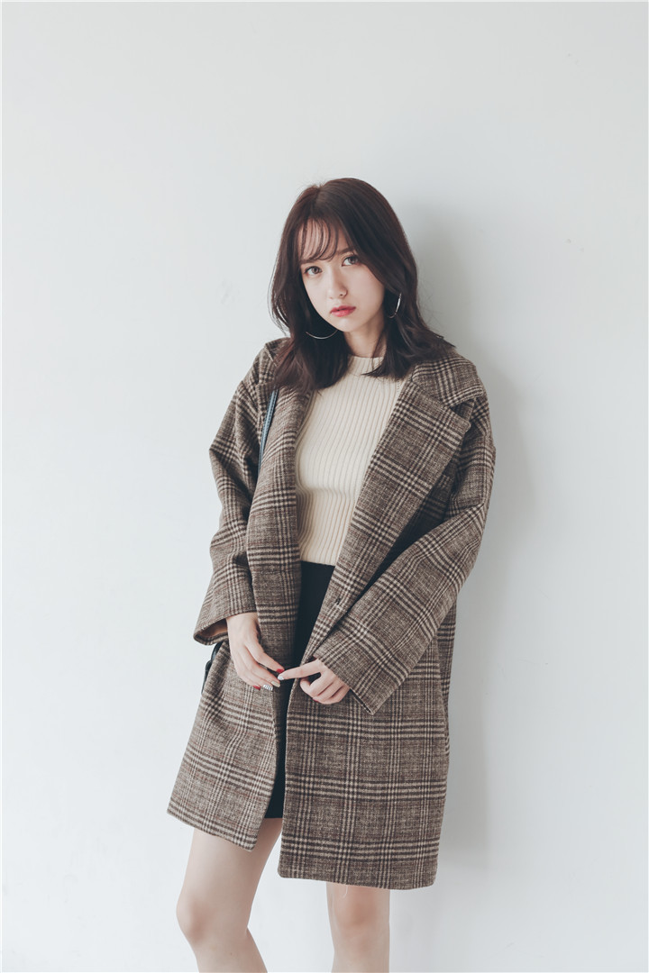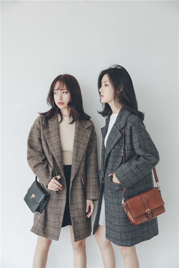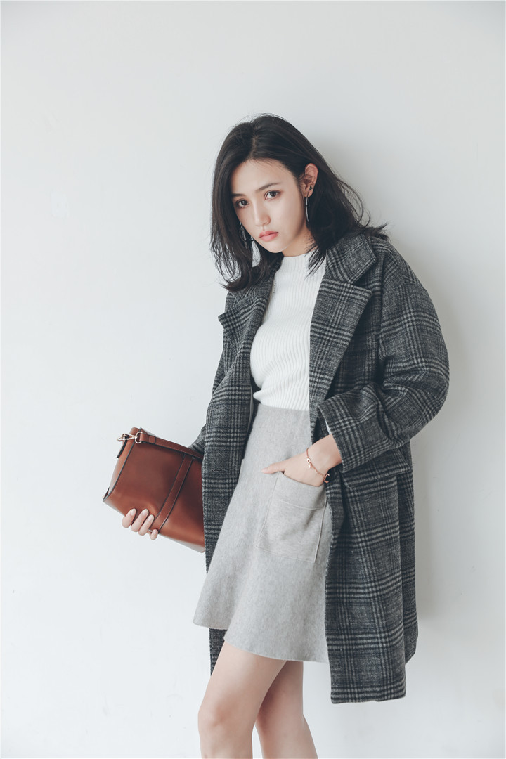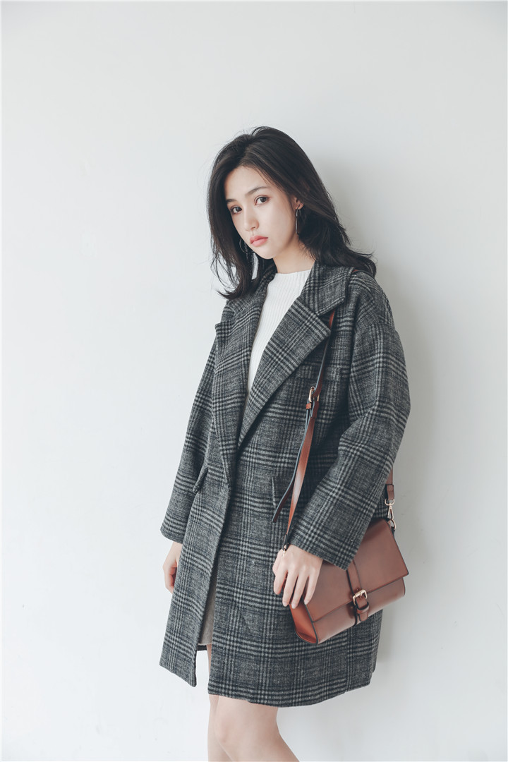 Новинка 2018 осенне-зимнее корейское модное пальто размера плюс клетчатое бархатное кашемировое пальто в шотландскую клетку утолщенное свободное шерстяное пальто