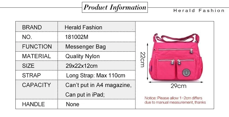 Herald Fashion женские сумки-мессенджеры качественная нейлоновая водонепроницаемая