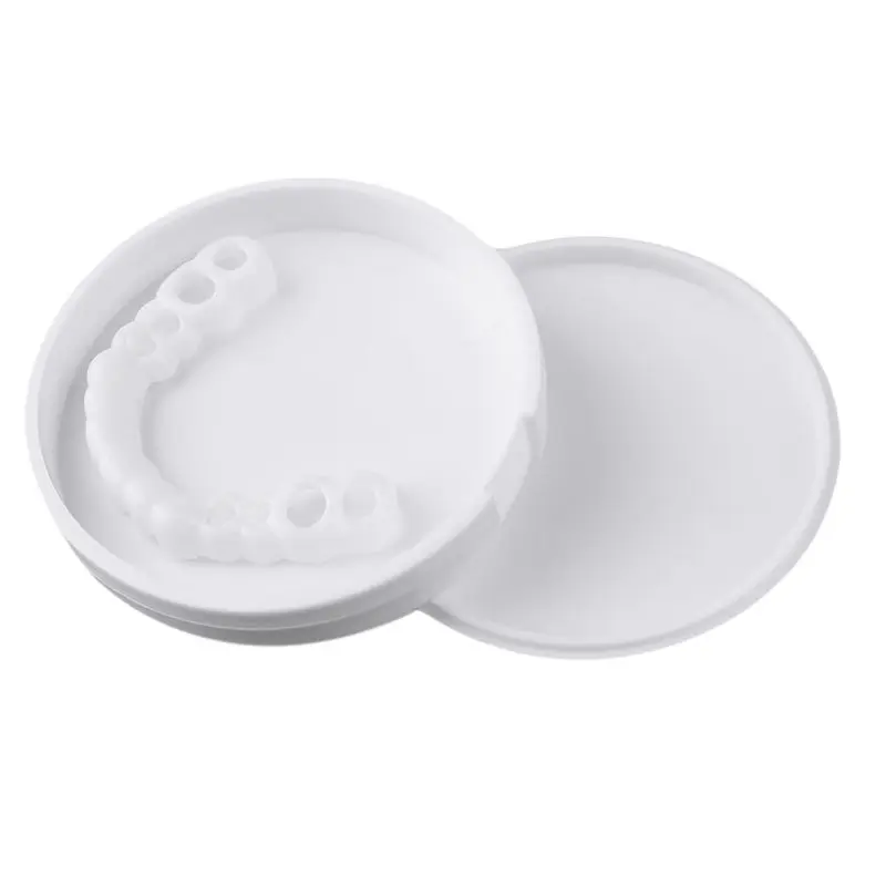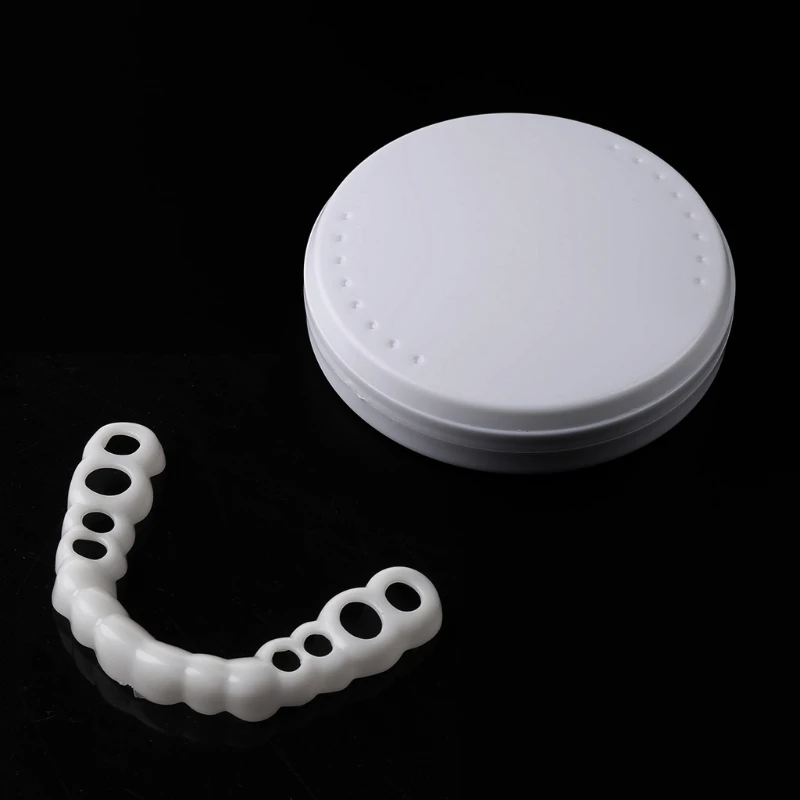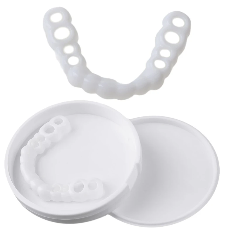 Очень удобно, нанесите на отсутствующие верхние или нижние зубы, замаскируйте кривые, запятнанные и заостренные зубы. Это занимает всего несколько минут!