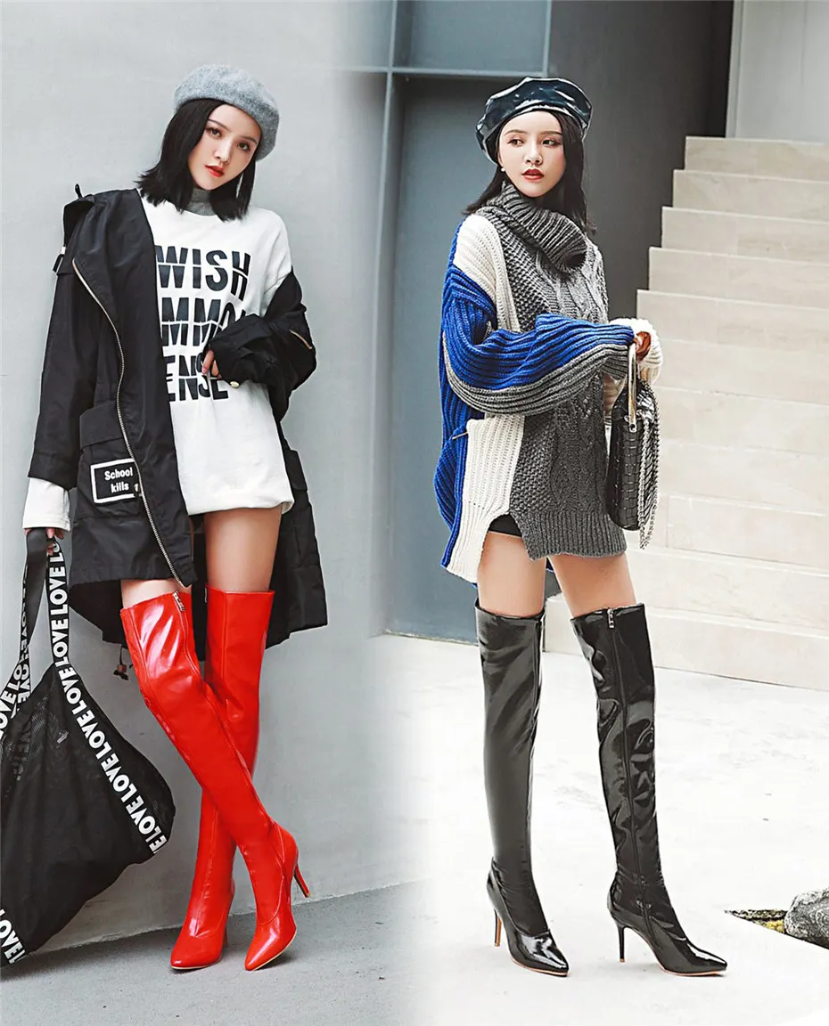 Женские сапоги до бедра из лакированной кожи на высоком тонком каблуке с молнией Сексуальные красные зимние плюшевые вечерние КлубныеЖенские блузы с длиннымСапоги выше колен (ботфорты) > Цвета: черный, белый, красный >Размер: EU 32-47 / US 3,5-14 > Повод: вечерние, Клубные, танцевальные, выступления, повседневные и т. Д. >Материал верха: Искусственная замша >Подкладка: ткань/плюш (на выбор) >Застежка: боковая молния > Носок обуви: острый носок > Окружность топа: 42 см (переменная) > Высота голенища: 55 см >Высота каблука: 8,5 см * Данные о верхней окружности и высоте вала, измеренные от размера США 5/китайского размера 36, должны отличаться от размера. |