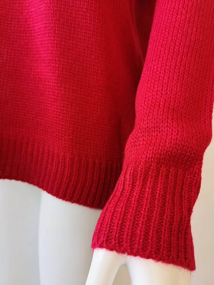 Свитер Женский вязаный с длинным рукавом однотонный черный белый V-образным