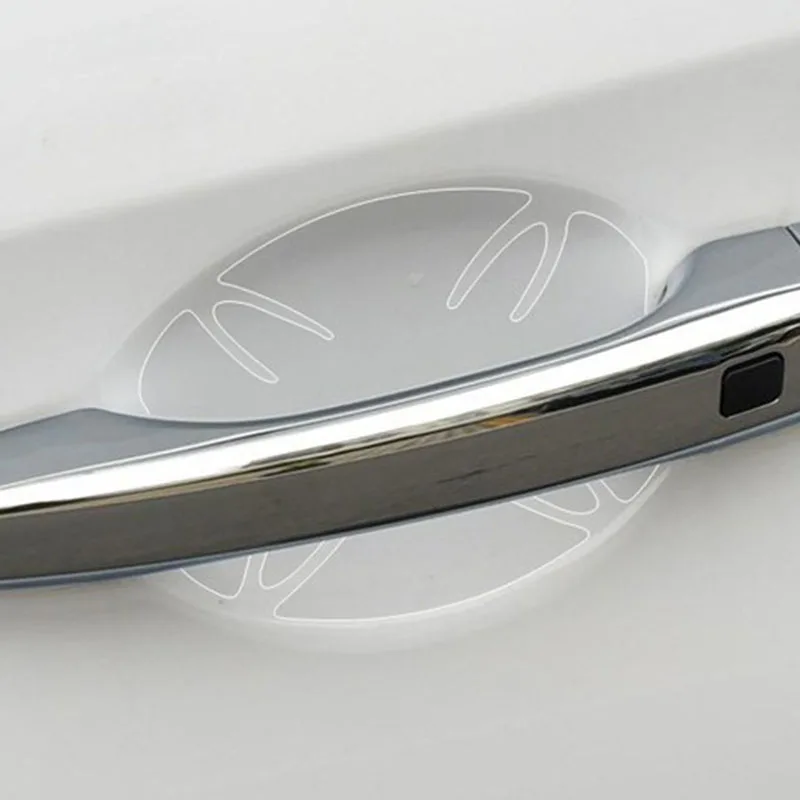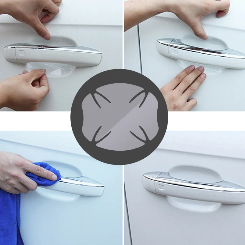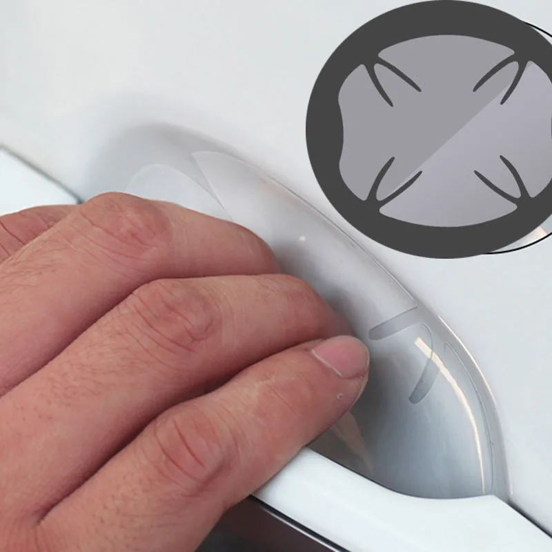 Особенности: Новинка и высокое качество Защитите краску вашего автомобиля от царапин Преимущество: потереть царапины, анти-обрастания, коррозии, предотвратить излучение супер твердость, устойчивость к царапинам, идеальный уход, яркий и прозрачный, простая конструкция Прочный, прозрачный, невидимый Материал: ПВХ бесцветный и прозрачный (полиуретан) Посылка: 4 шт. одного комплекта Размер: прибл. 9*8 см Примечание: Использование необходимо сначала распылить водой на дверную ручку, чтобы предотвратить кривую пасту, распыляемую водой, можно своевременно исправить! Вставьте после 2-3 дней, пожалуйста, не дождитесь и не стирайте автомобиль! Посылка: 1 x набор наклеек на автомобильные ручки (1 набор = 4 шт.)