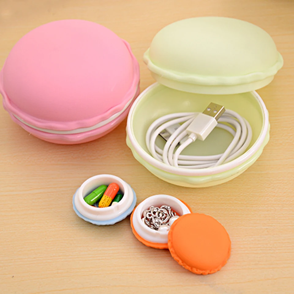 【 Разноцветное сочетание-разные цвета, как показано на картинке. Милые коробки для хранения в форме макарон служат в качестве шкатулки для ювелирных изделий, коробки для хранения, футляра для таблеток, домашнего аксессуара, подарка.