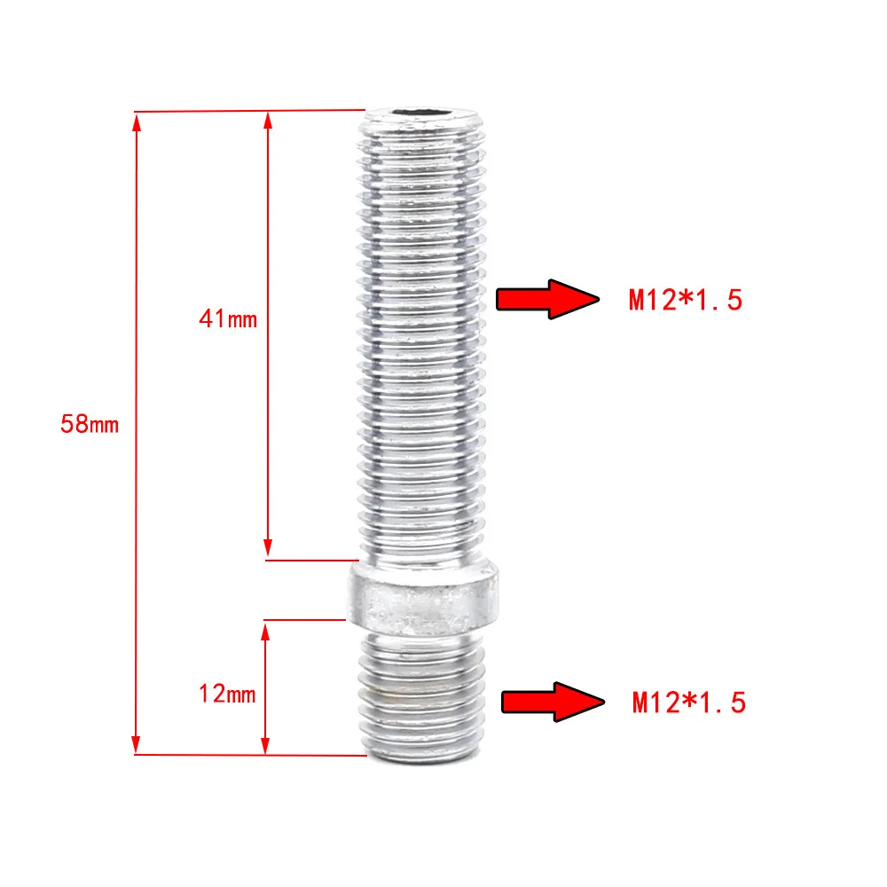 Количество: 20 штук Шаг резьбы (транспортное средство) - 12 мм X 1,5 Преобразования шаг-12 мм X 1,5 Общая длина-58 мм Материал-сталь Преобразуйте болты в гайки Таким образом, вы можете иметь больше колес и выбор цветных гаек с преобразованием. Примечание: поскольку это удлиненный стержень, большинство из них требуют использовать открытые гайки