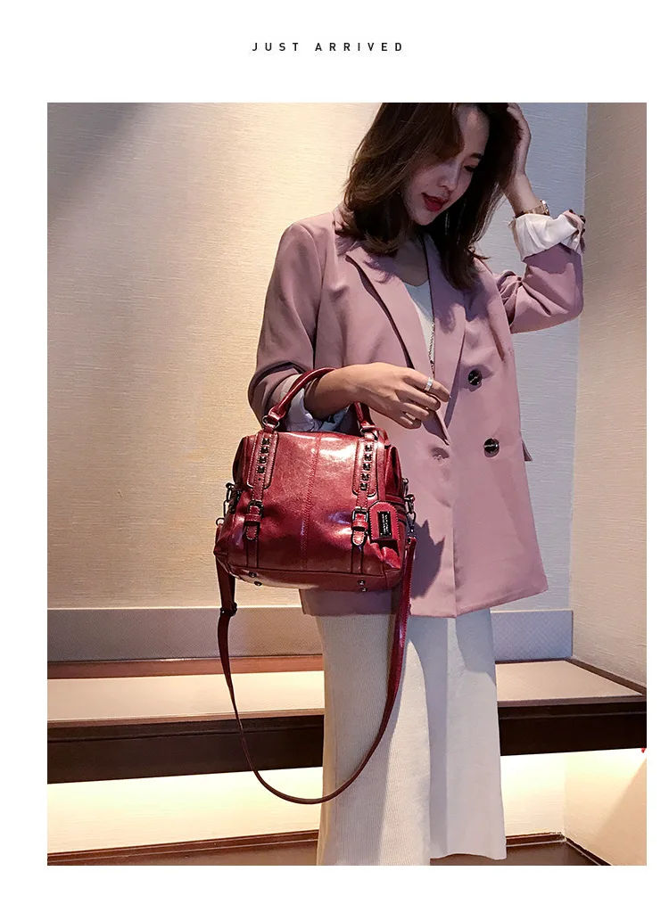 Женская большая сумка в стиле ретро, новинка 2019, роскошный дизайн, сумки на плечо, модная женская сумка с заклепками, Большая вместительная женская сумка-тоут, черная, красная