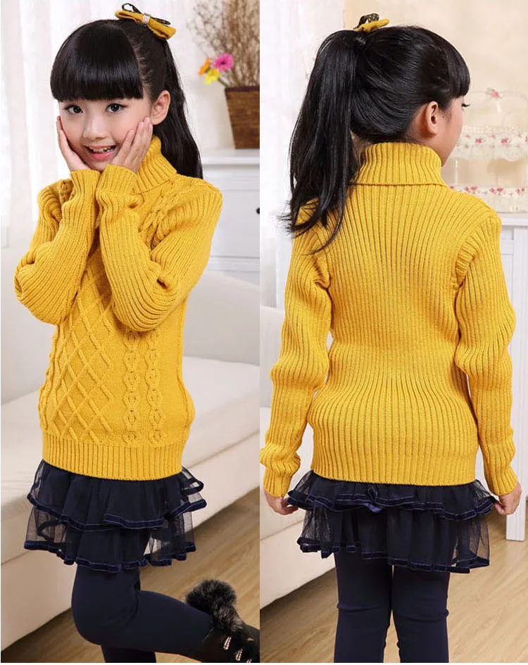 От 2 до 6 лет вязаный пуловер с высоким воротником для девочек; свитера для девочек; детский модный свитер для мальчиков; сезон весна-осень-зима