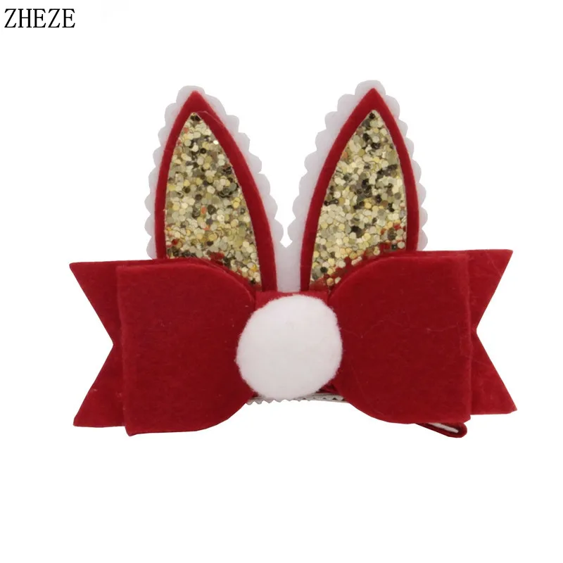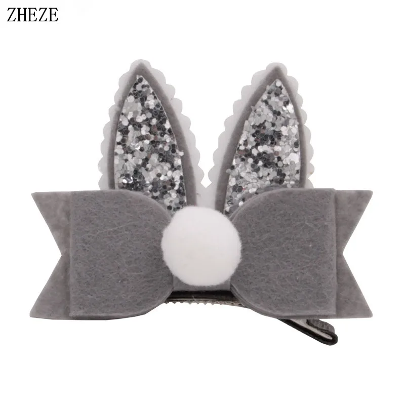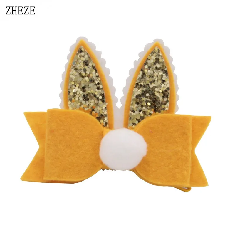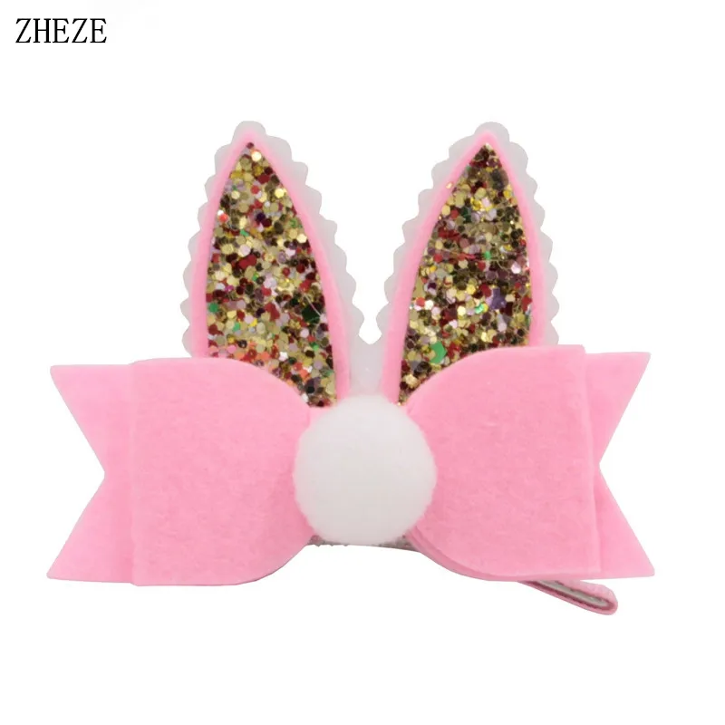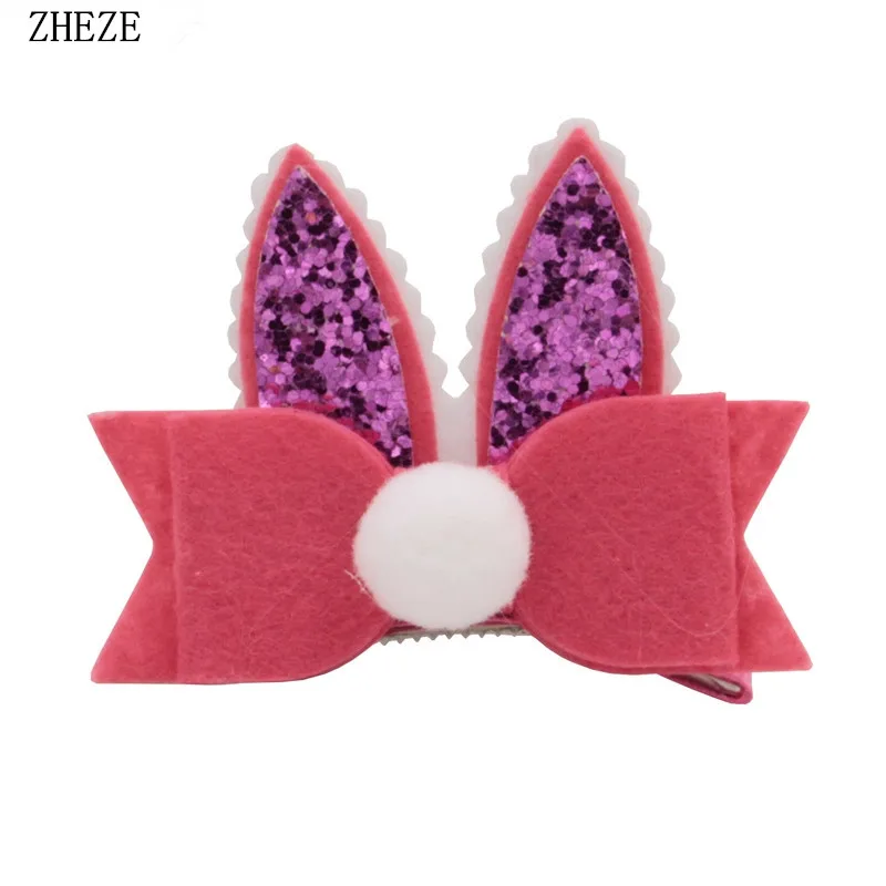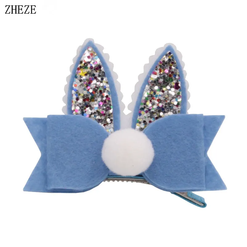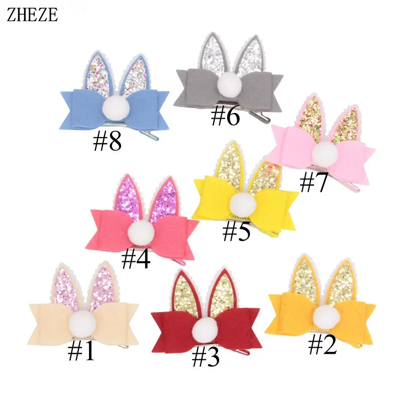 8Pcs/Lot 2021 Glitter Rabbit Ear Hair Clips 3'' Sequin Bow Barrette Easter Bunny Hair Clips For Kids Handmade Hair Accessories