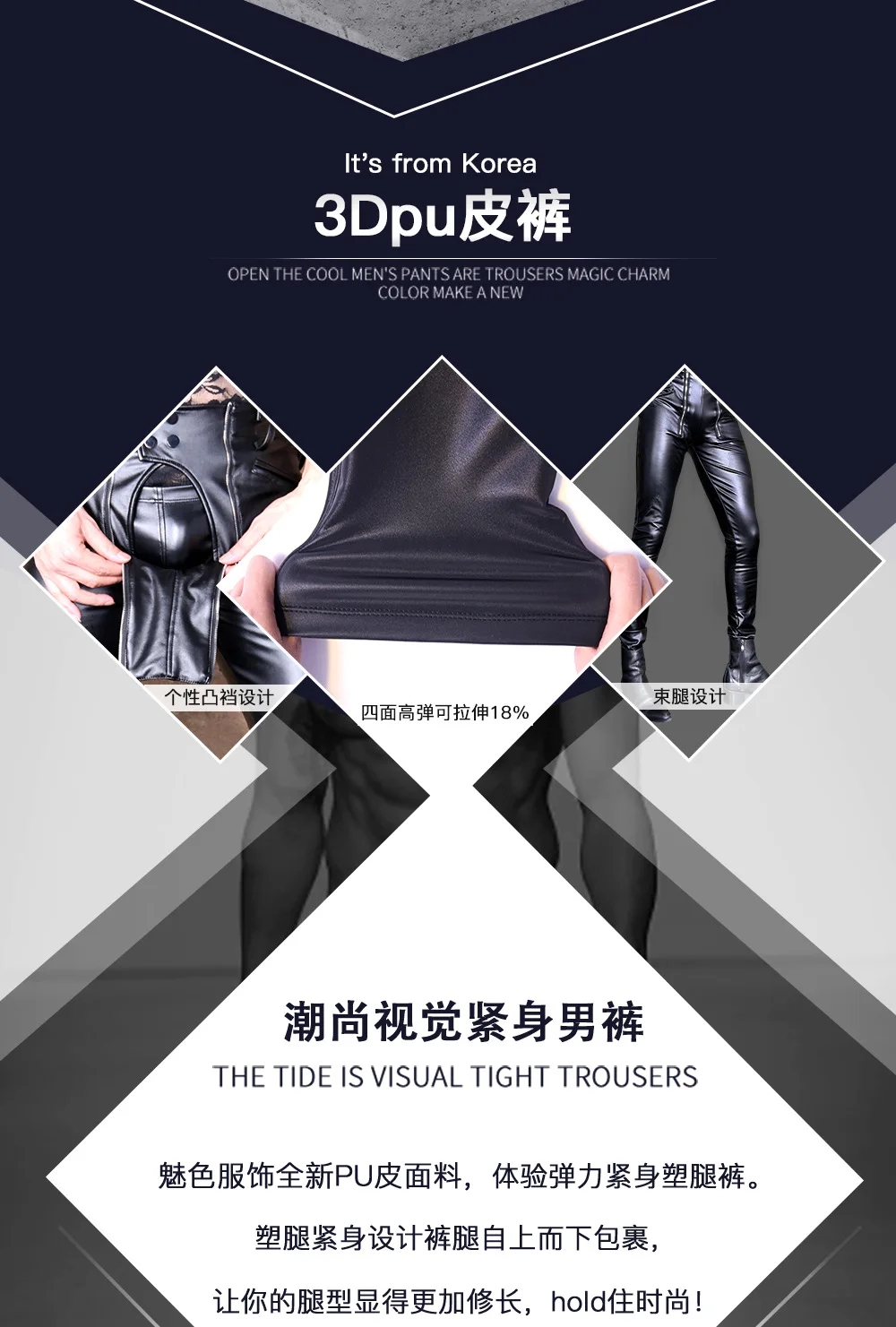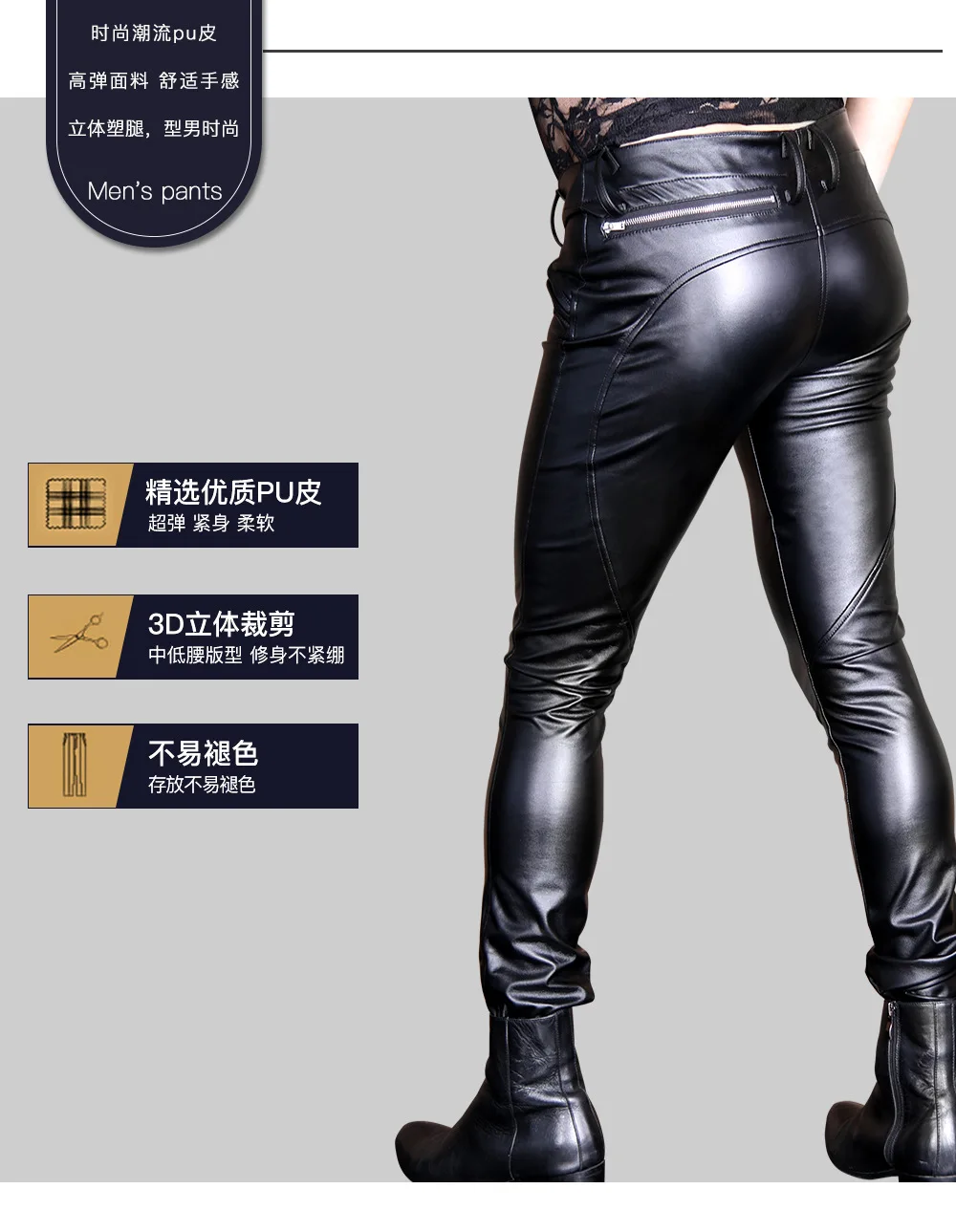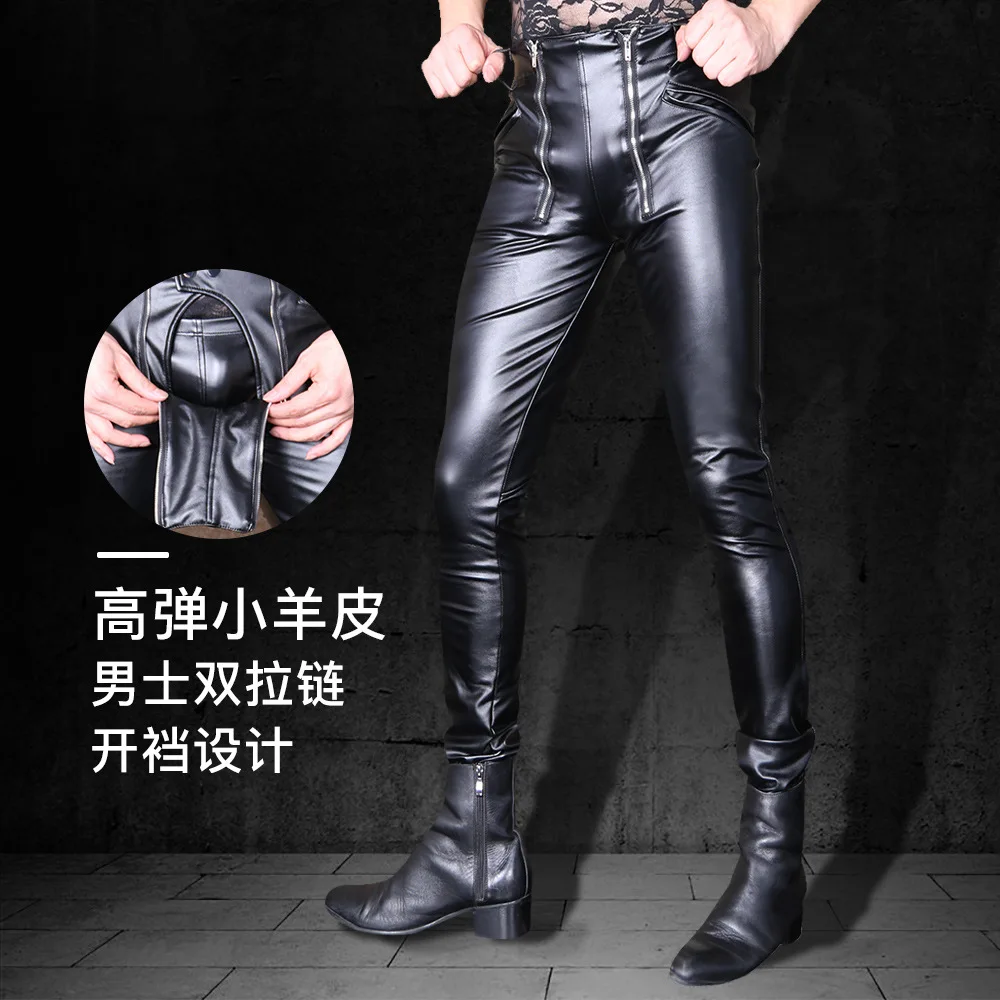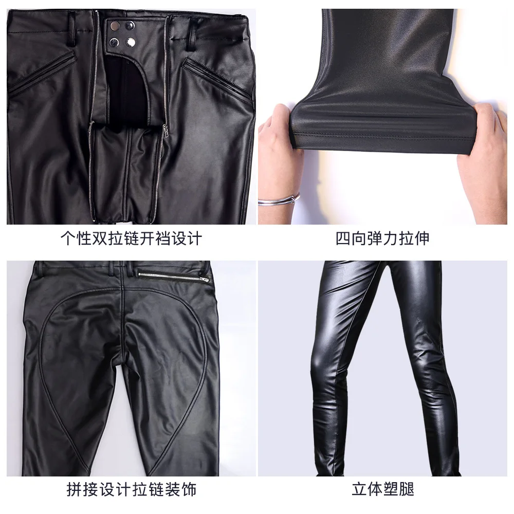 Cool Men's High-Stretch PU Leather Pants Tight Fashion Style Faux Leather Trousers Thicken Jockstrap Korean Casual Cargo Pants