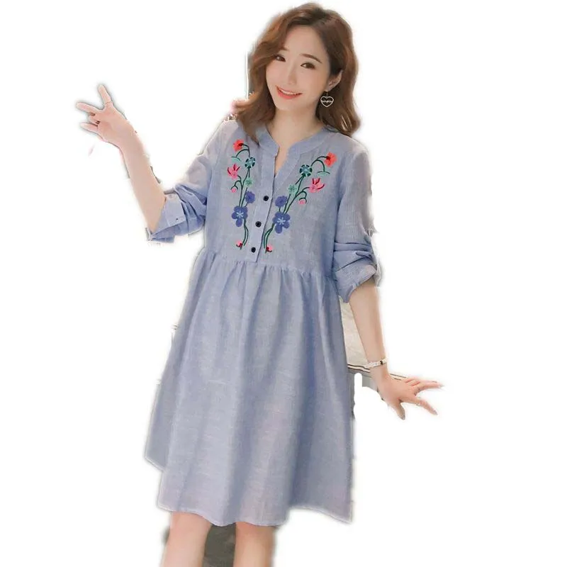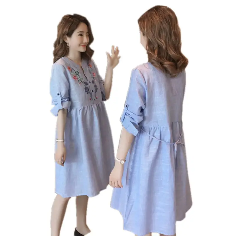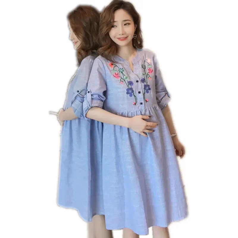 Женское платье для беременных Losse, летнее Повседневное платье с цветочной вышивкой и v-образным вырезом, большие размеры