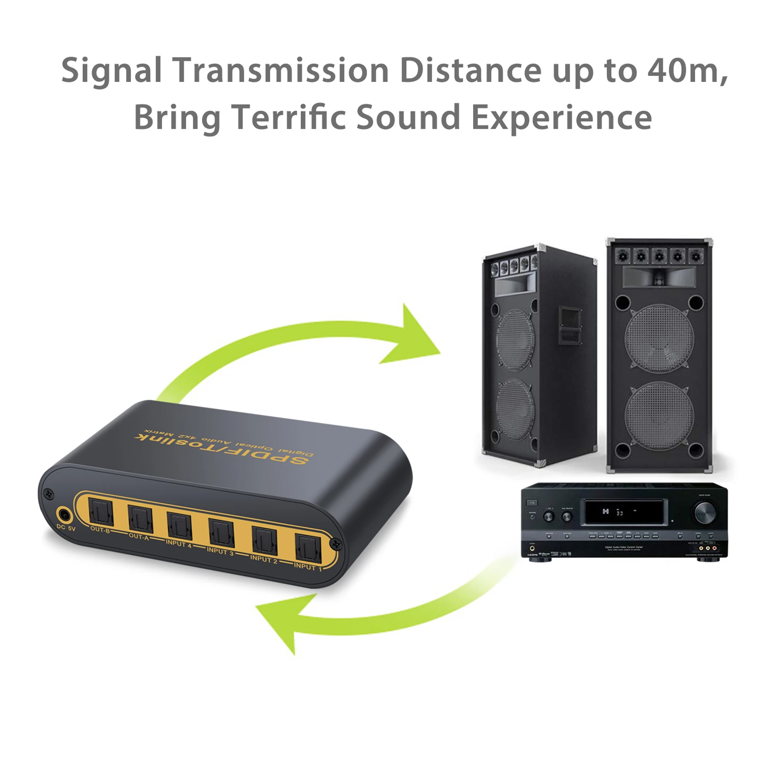 2. Чтобы выходной порт матрицы подключался к приемнику оптического волокна сигнала (например, усилитель, домашний кинотеатр и так далее) с помощью оптического кабеля