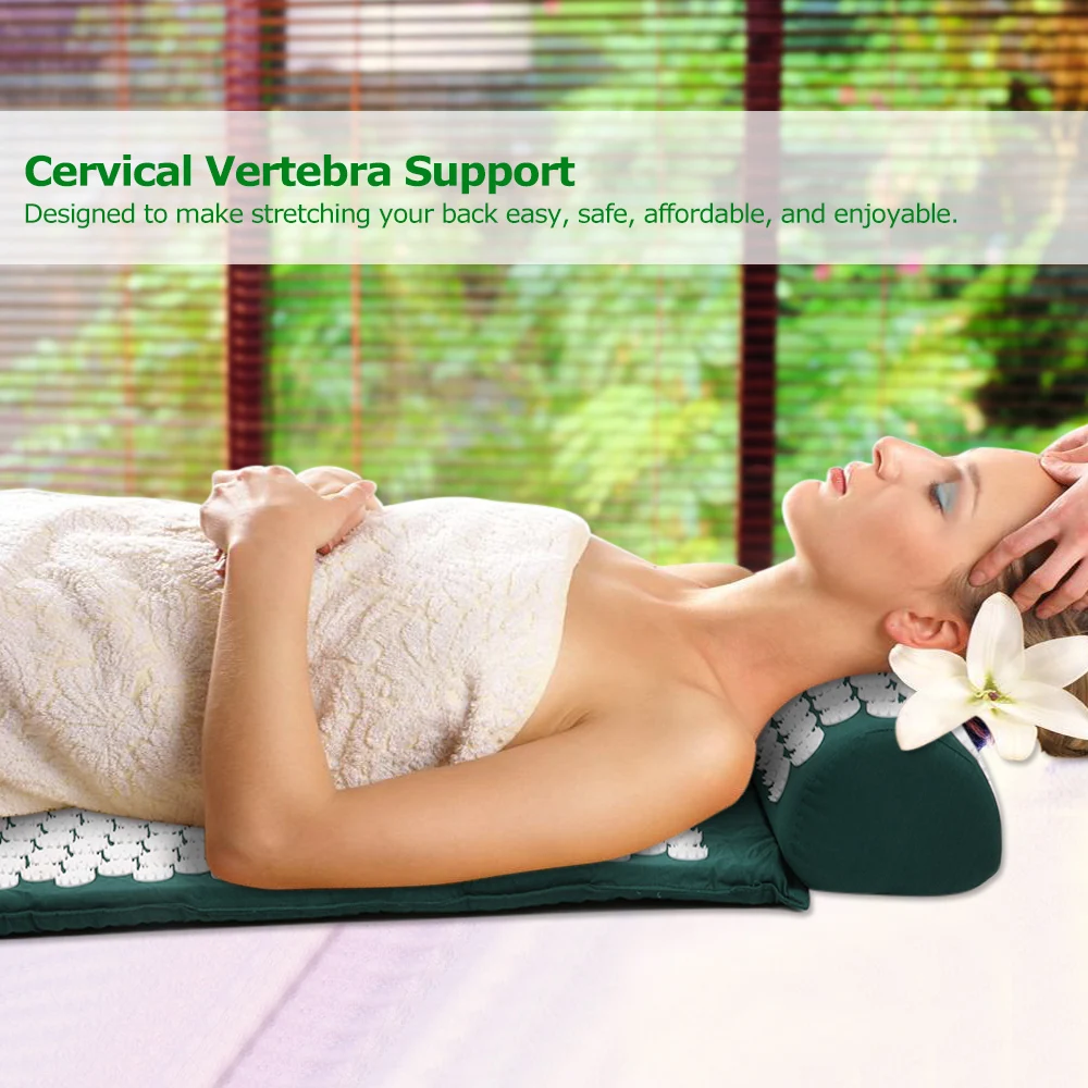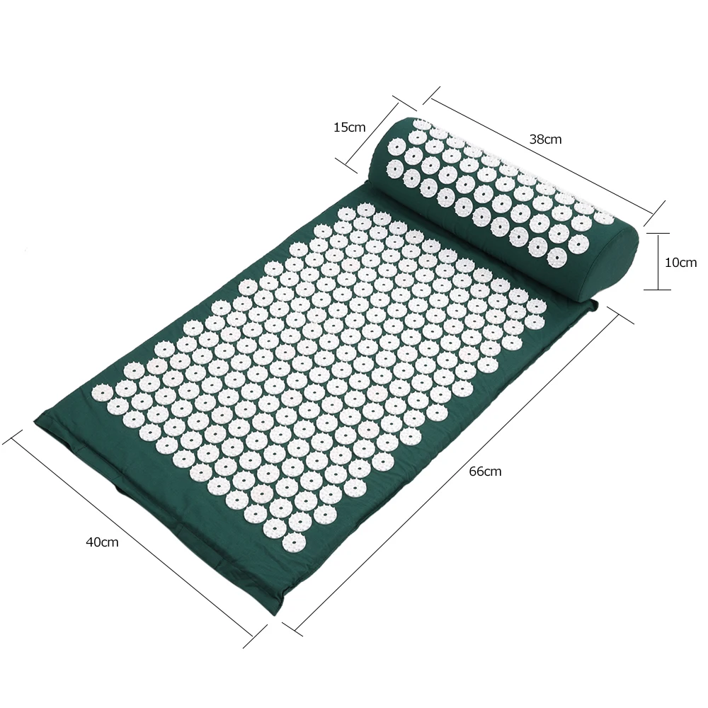 Вы не занимаетесь спортом? Вы сидите в офисе целый день? У вас есть проблемы с шейным позвонком? Теперь испытайте акупунктурную массажную подушку! Подушка полностью растягивает позвоночник и снимает боль в шейных матках. 73 шт. массажных точек на подушке, положите на пол, чтобы растянуть, на кровать, когда вы отдыхаете, также подходит для yoga!