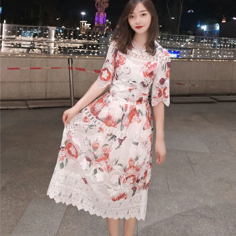 Женское длинное платье с цветочным принтом подиумное элегантное вечернее
