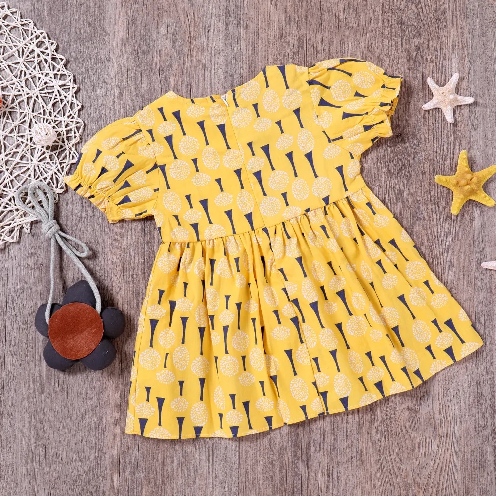 Летний комплект из 2 предметов для вечерние девочек, желтое праздничное платье принцессы с короткими рукавами и принтом листьев + милая сумка с подсолнухом для детей 1-3 лет