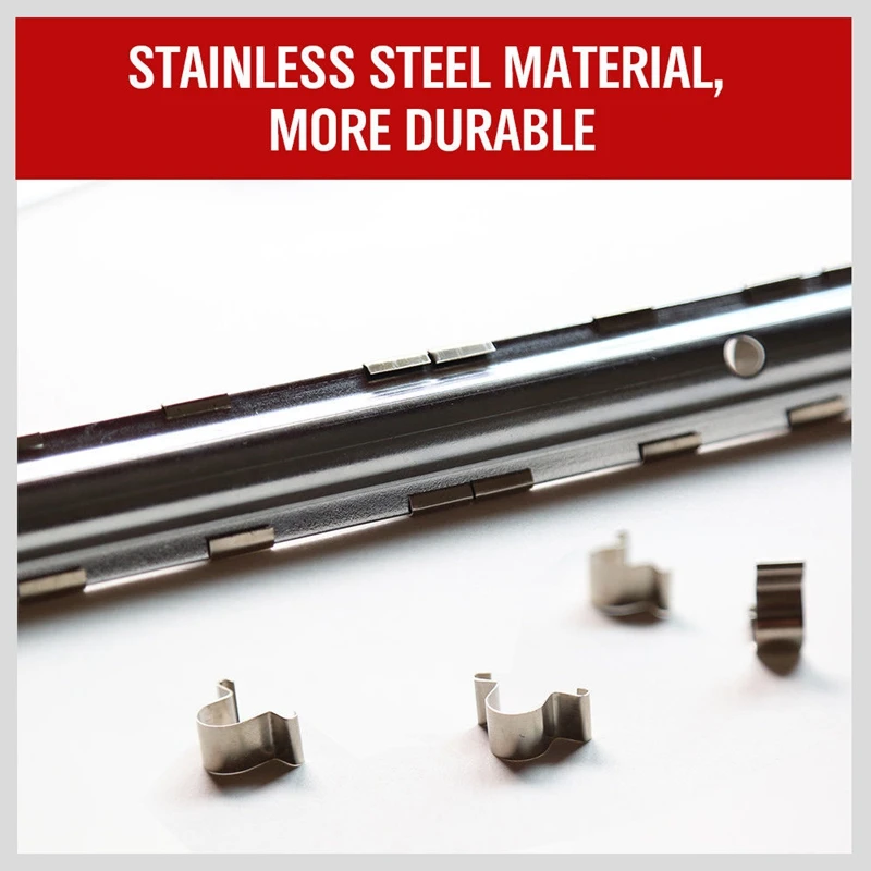 Покрытая сталь с пружинными стальными зажимами, которые легко установить на место и надежно удерживать на гнездах.