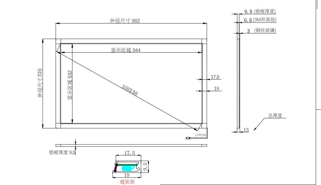 ПараметрыДля 43 дюймов 20 точек ИК мульти сенсорный экран: