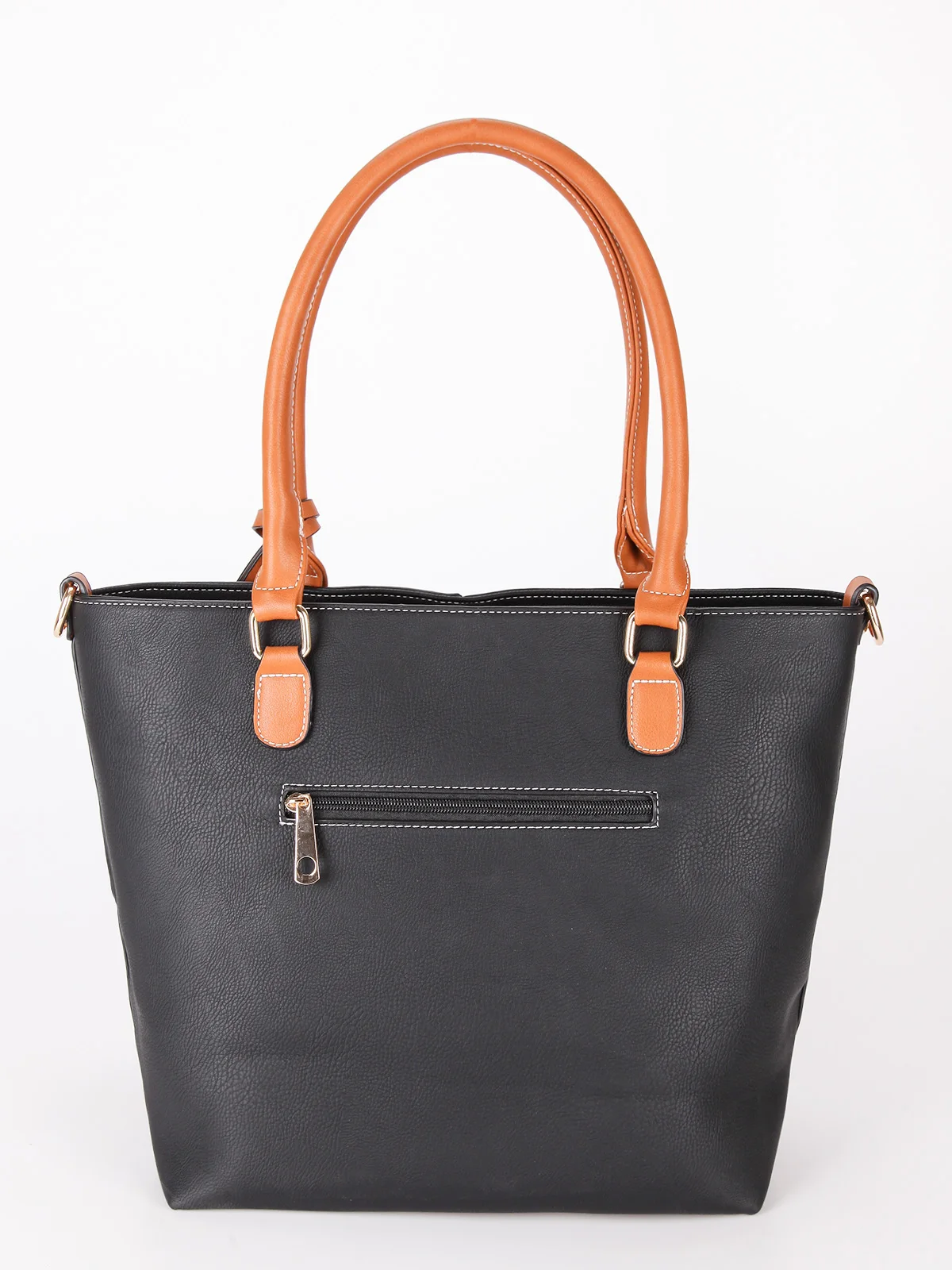 Узор: описание тоут: внутренние карманы с застежкой-молнией, отделения с держателем для телефона, внешний карман на молнии, с кошельком для монет, съемный плечевой ремень. Детали: Размер: H 29,5, L 40, P 14,5 Внутренний материал: Tessuto материал e снаружи: EcopelleManici: lungoTasche: InternaChiusura: с CernieraFantasia: двухцветный