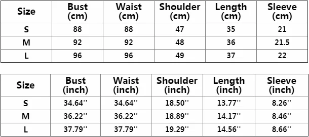 Таблица размеров (см/дюйм):
