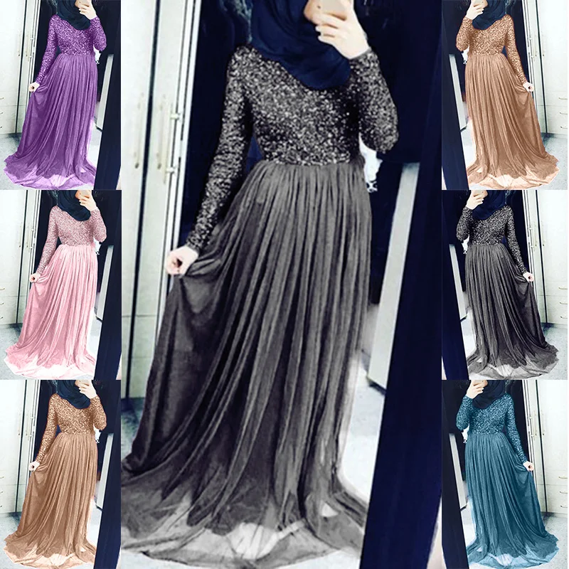 * Предмет описаниеN:Модный; новый; мусульманский; длинный рукав; сращивание; тюль; вечерние; макси платье