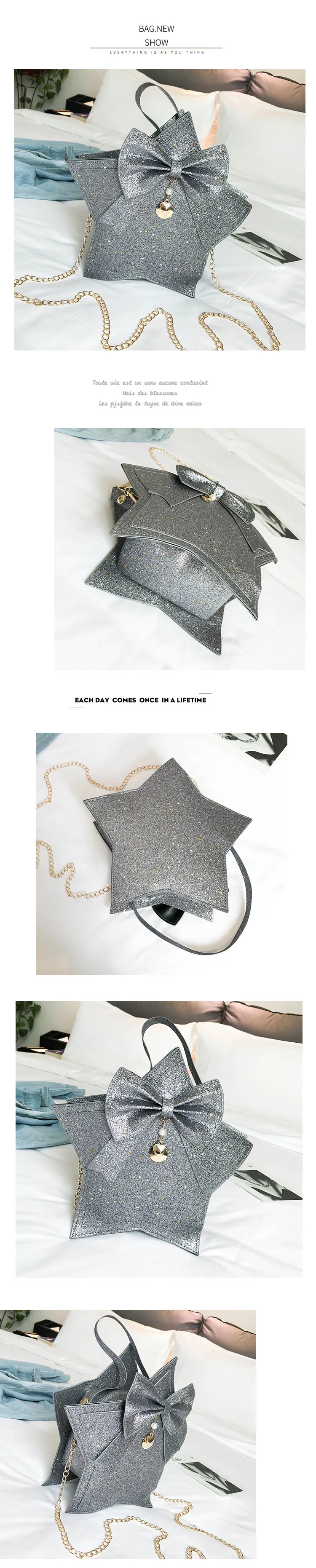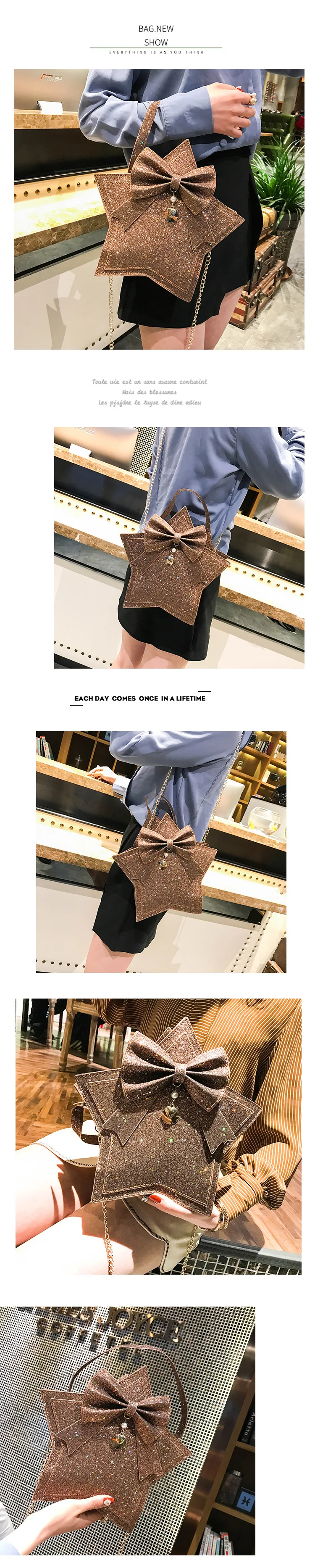 Женская пятиконечная звезда сумка через плечо из искусственной кожи Женская Лолита сумка Harajuku цепочка с бантом Сумка через плечо