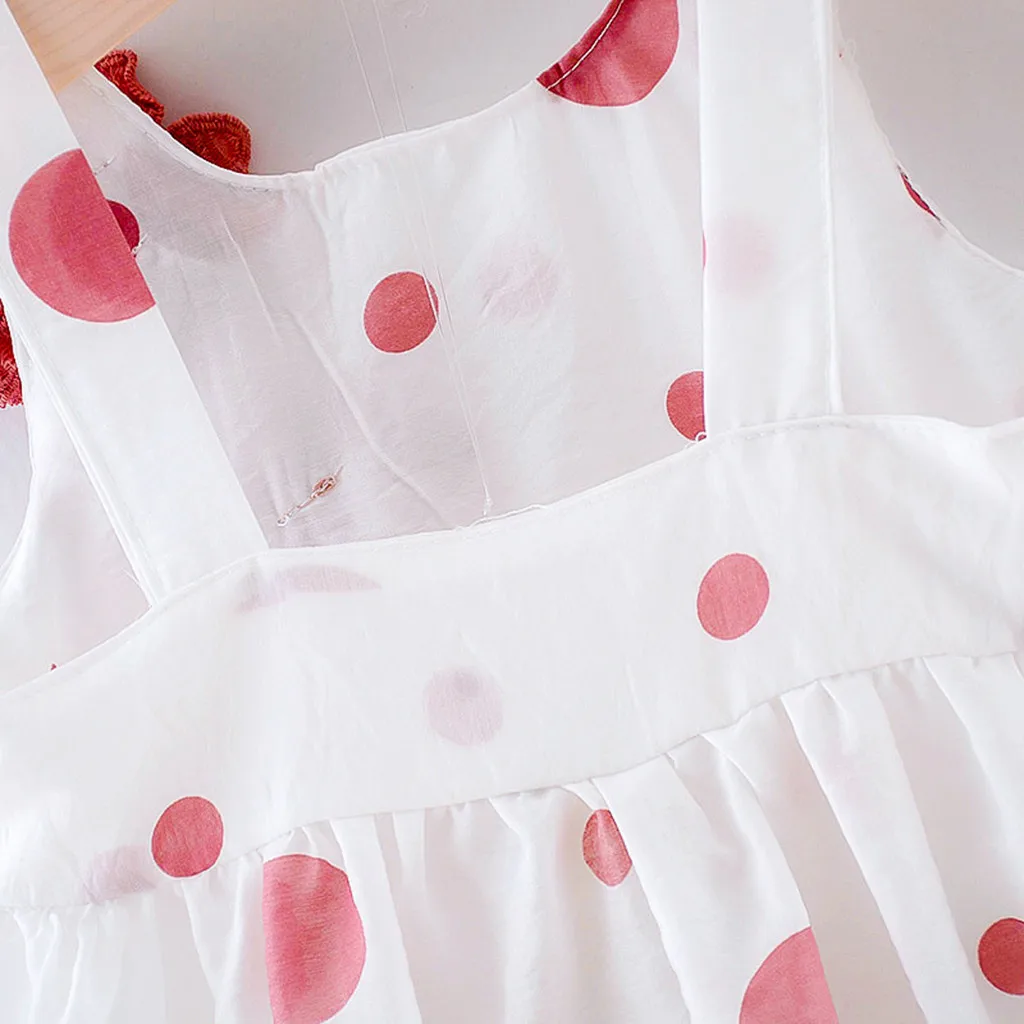Платье в горошек без рукавов с оборками для маленьких девочек