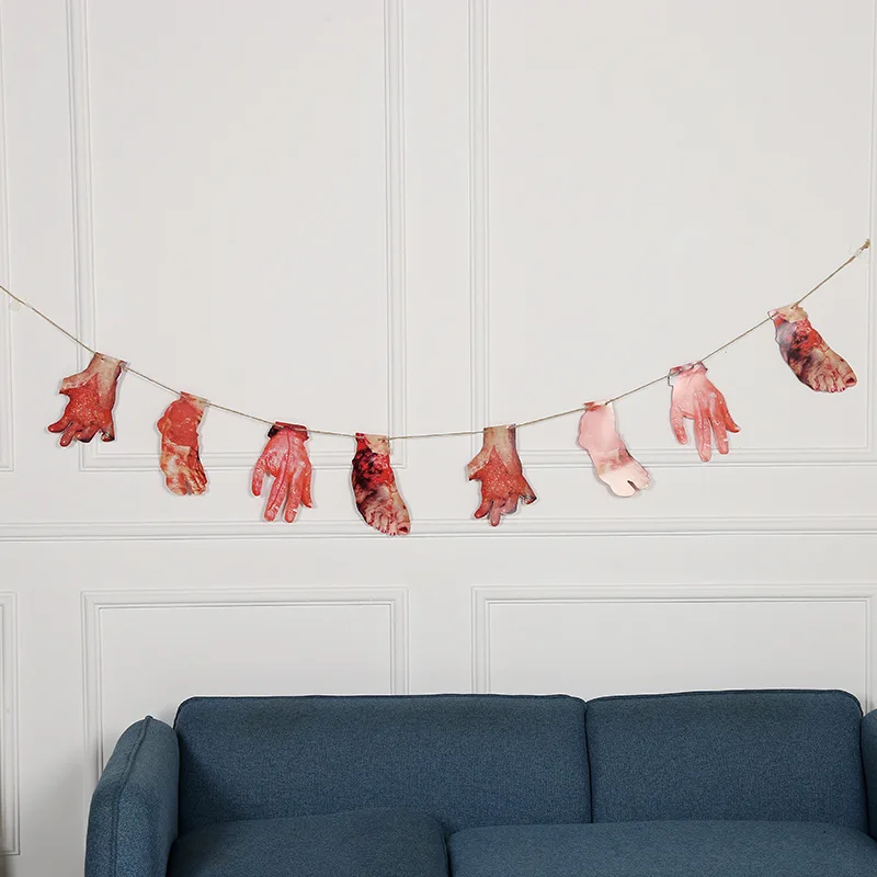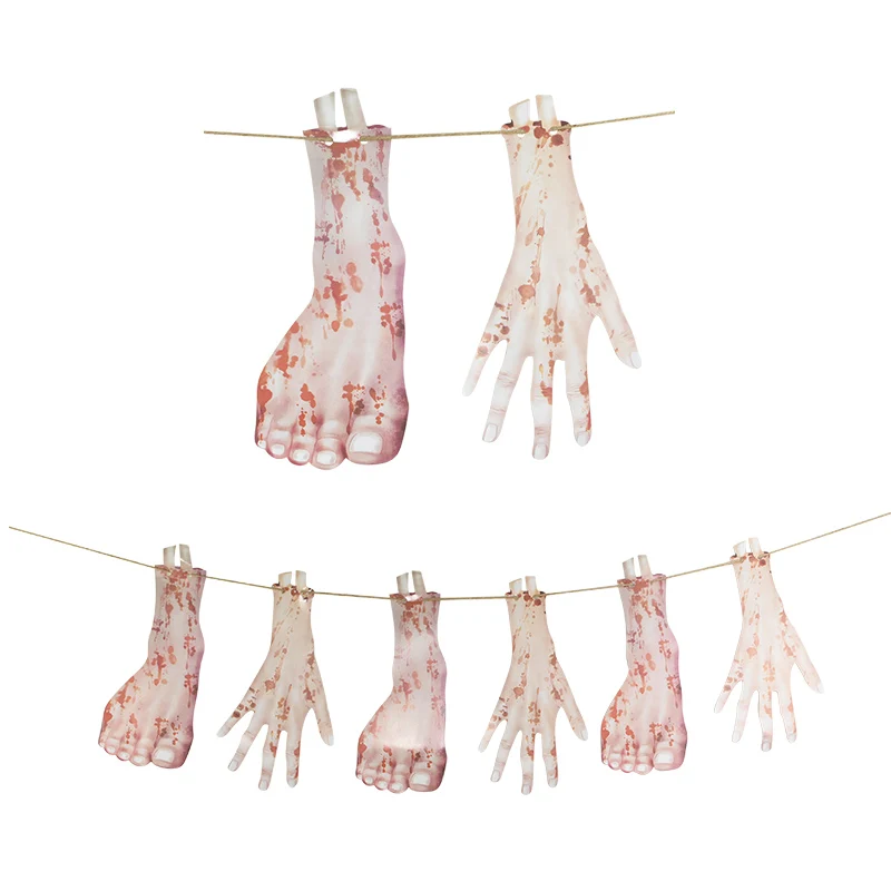 1 комплект, ужас, жуткий, висит, руки, страшные конечности, руки, кровавая бумага, гирлянда, баннер, сделай сам, Хэллоуин, украшения, реквизит, предметы для вечеринки, сувениры