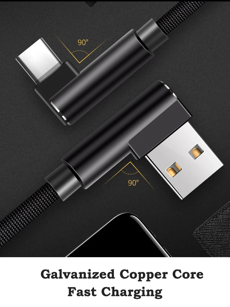 USB C type C кабель для Xiaomi K20 90 градусов кабель для передачи данных для samsung S8 S9 Note 8 Note 9 Быстрая зарядка для Oneplus 6 T type c кабель 1M