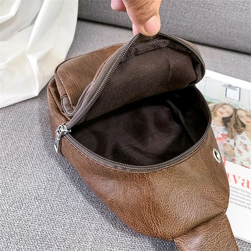 Retro Men Chest Bag PU Leather Sling Shoulder Cross Body Messenger Male's New Soild Color Zipper Traveling Handy Chest Bags Hot!