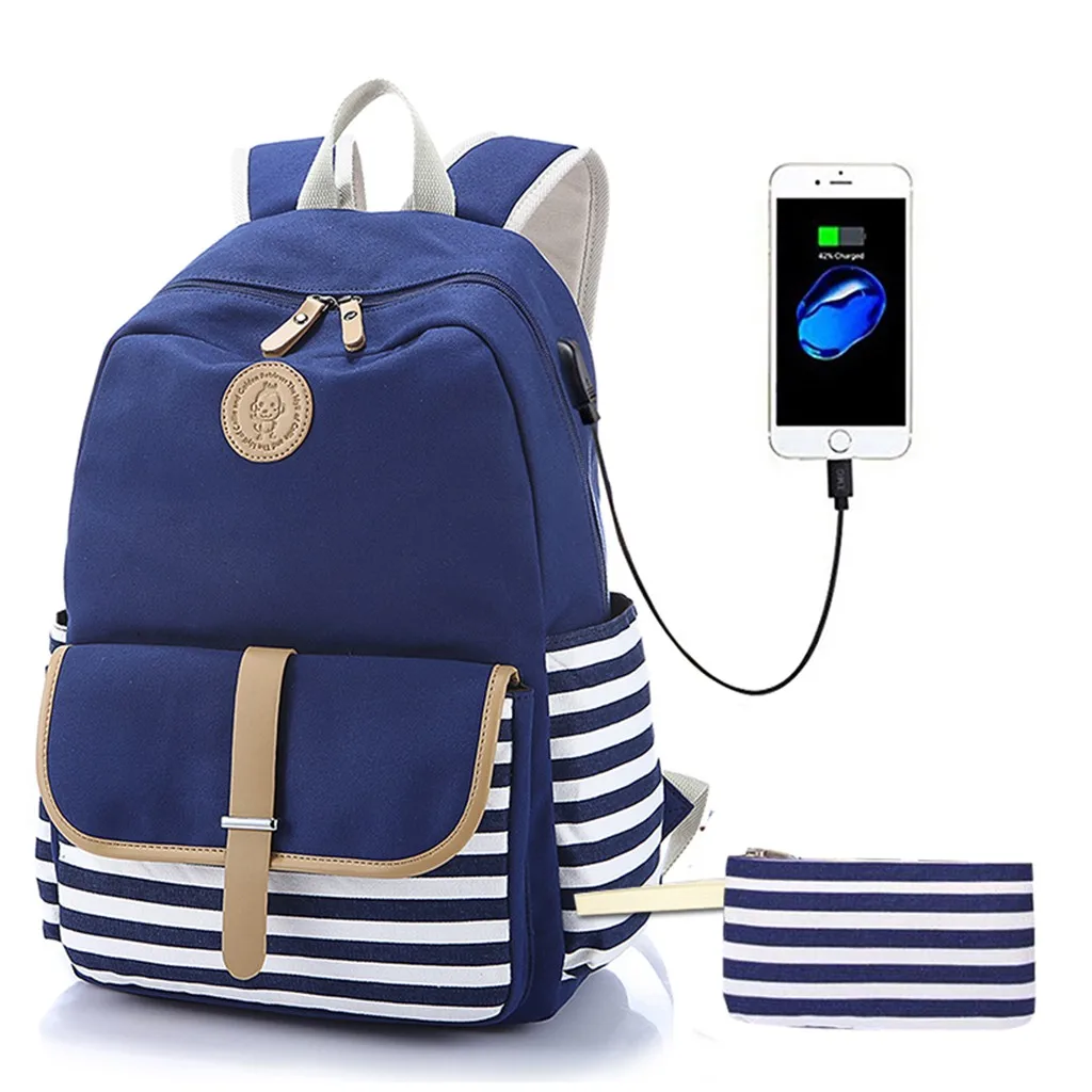 3 шт. женская сумка в полоску для девушекПлечоРюкзак с usb-разъемом