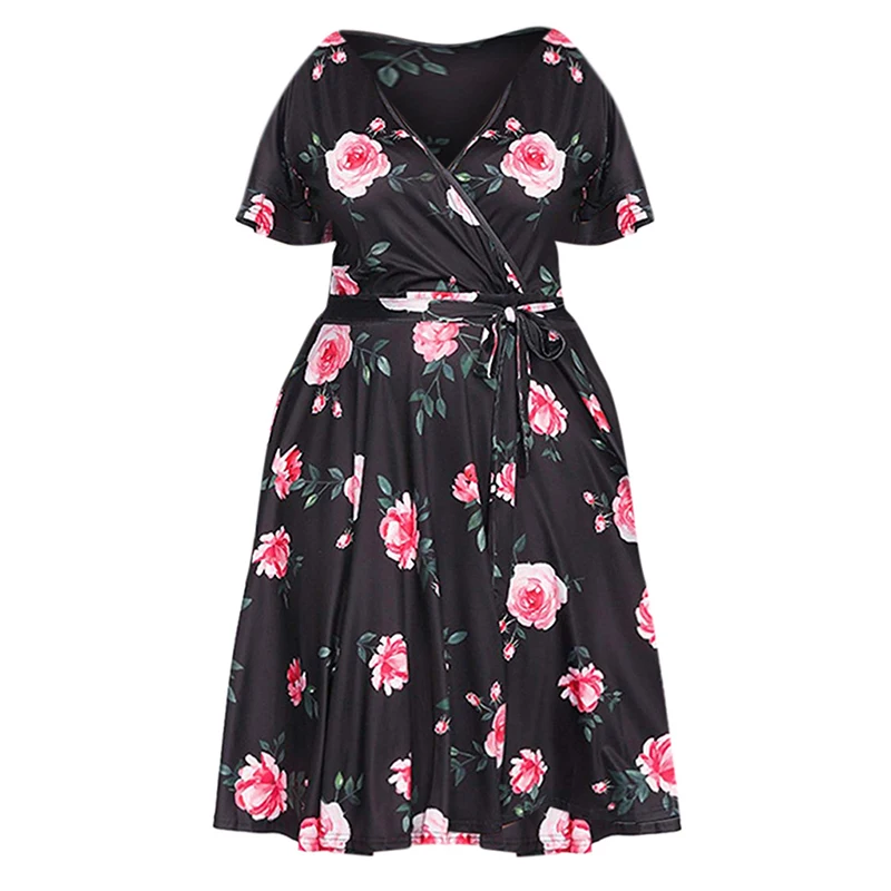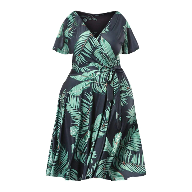 Wipalo 2019 Women Flower Leaf Print Plus Size Summer Dress Casual V Neck Short Sleeve Wrap Dress Ladies Big Size 5XL Vestidos