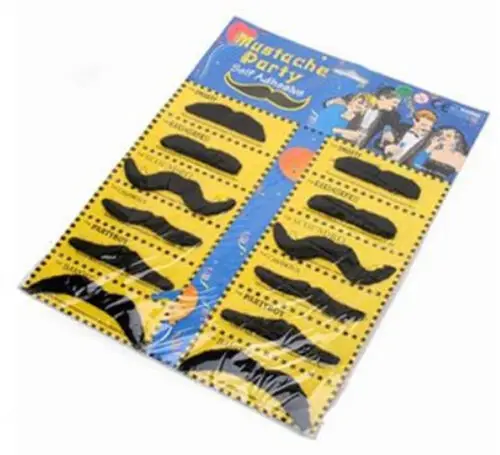 12 Adhesive Assorted Fake Moustaches Mustaches Brand new & high quality With 6 different styles Self adhesive - simply choose which one you want to use, peel off the back and stick it on Great for any sort of fancy dress party You will receive 2 of each of the following moustache styles: 1. The Smarty 2. The Rogue 3. The Scoundrel 4. The Casanova 5. The Partyboy 6. The Bandit Package included 12 X Fake Moustaches
