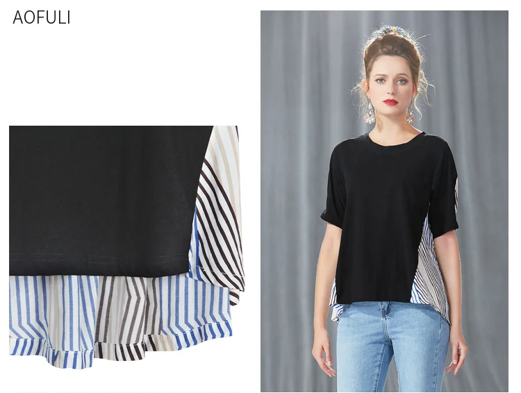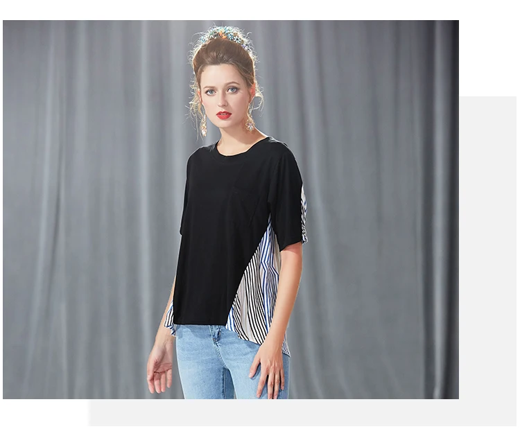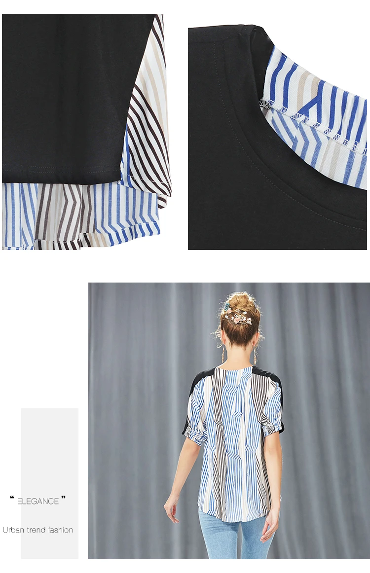 Блузка в полоску с высоким и низким вырезом