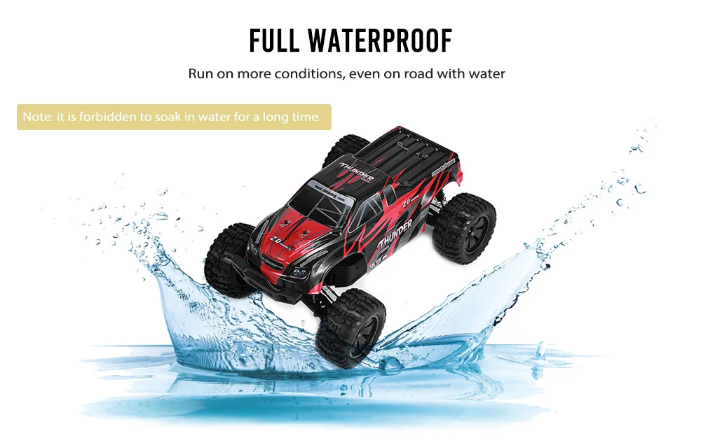 Оснащен 3660 полностью водонепроницаемым бесщеточным двигателем, стандартным сервоприводом 6 кг, батареей 2400 мАч, передатчиком 2,4G 3CH, скорость радиоуправляемого автомобиля до 60 км/ч и может иметь дело со всеми видами грубых дорог, таких как пески, луг, гравий. Кроме того, запасной светодиодный светильник на передней панели отлично подходит для игроков, которые любят DIY.