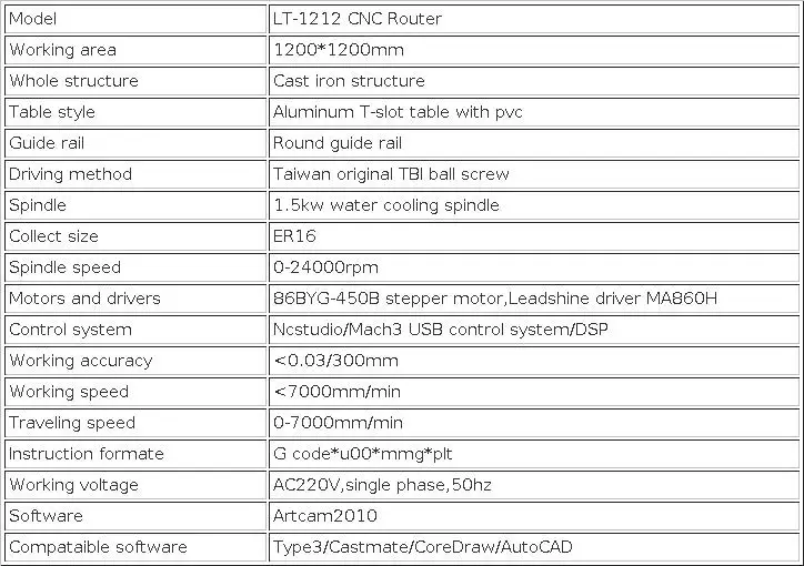 1) рабочая зона: 1200*1200 мм алюминиевый Т-образный стол с пвх; 3 оси; Старый тип