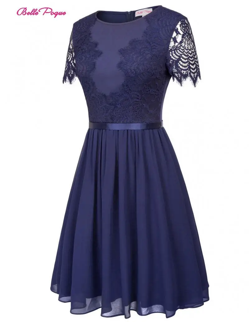 Dress Features | 1)Short sheer sleeves 2)Crew neck 3)Concealed zipper in the back 4)Fixed satin band adorns waist 5)Flared A-Line chiffon skirt 6)Bodice is a little elastic, skirt is not elastic 7)No lining |