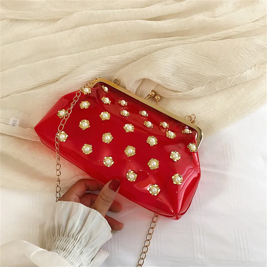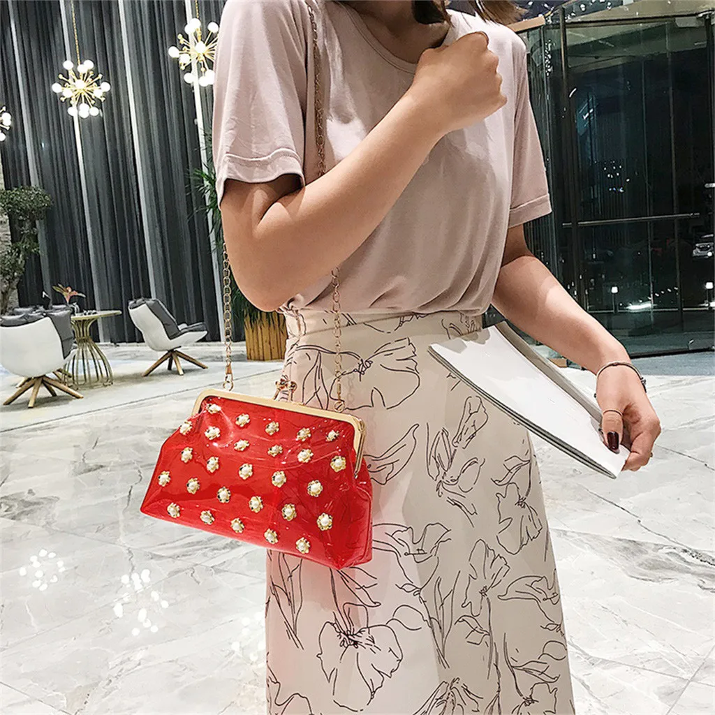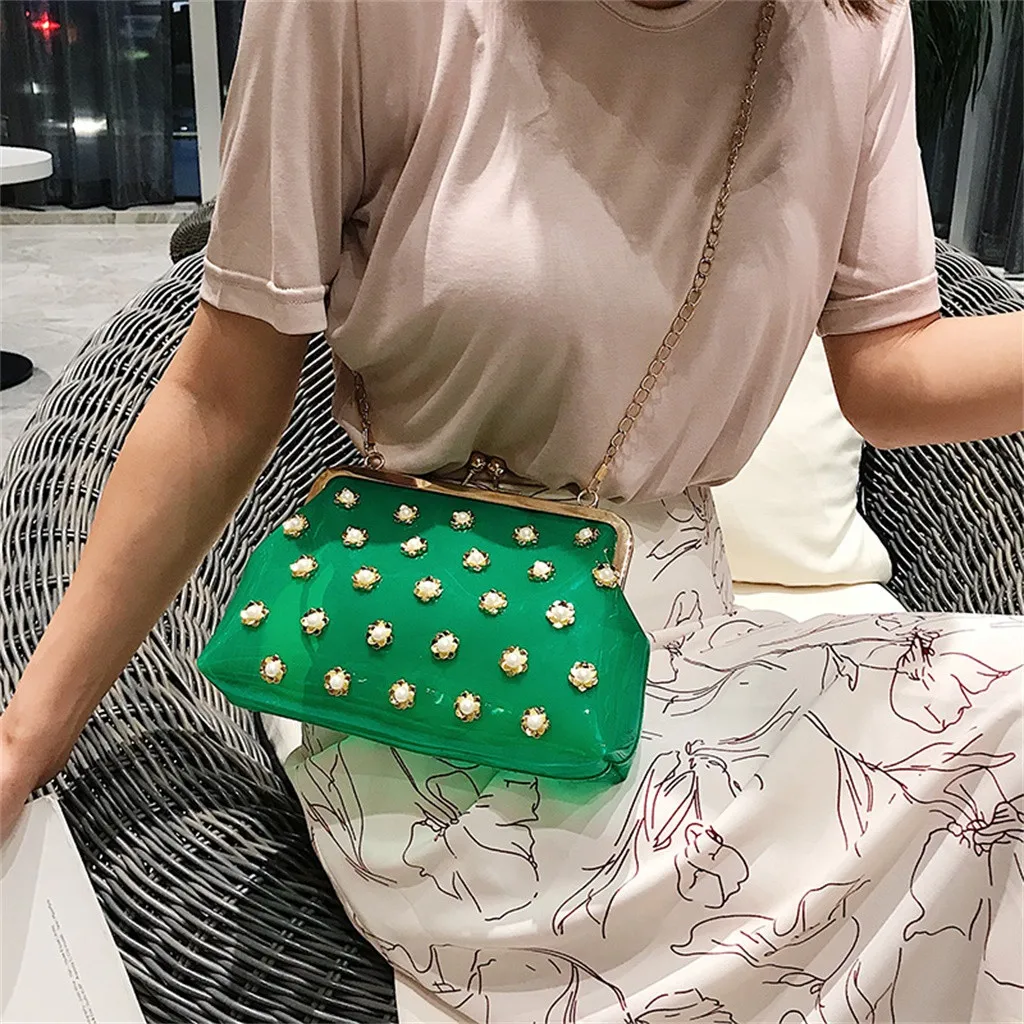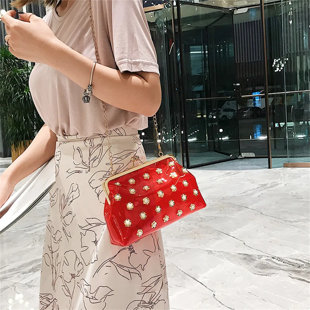 Женская летняя прозрачная цветная сумка для ужина из ПВХ прозрачная сумка с заклепками