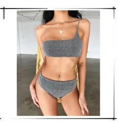 Золотой и Серебряный Шелковый сексуальный бикини с высокой талией, Пуш-Ап купальный костюм, купальный костюм, пляжная одежда, два предмета, бикини, купальник, женский купальник