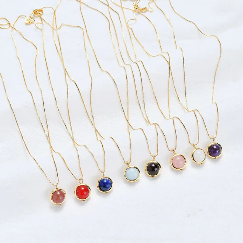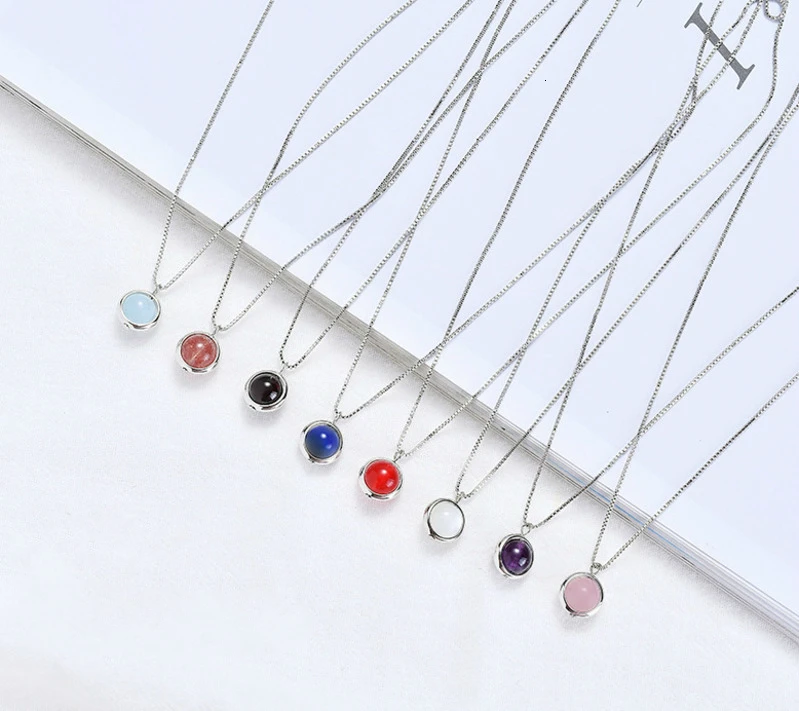 Ожерелье с кулоном с натуральным клубничным кристаллом для женщин 2019 лаконичный дизайн розовый синий цвет натуральный камень модное ожерелье ювелирное изделие