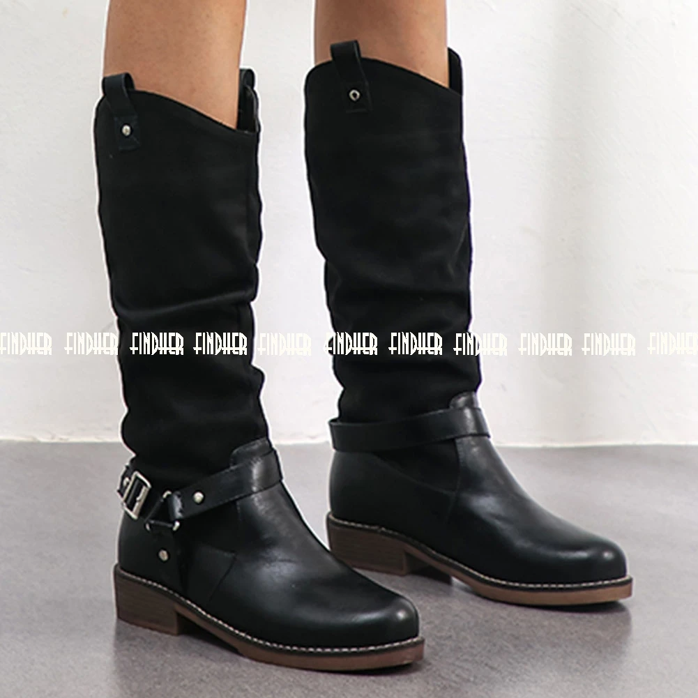 FINDHER/женские ботинки «Челси»; обувь на низком квадратном каблуке; женские сапоги до середины колена на платформе с закрытым носком и ремешком без застежки; большие размеры