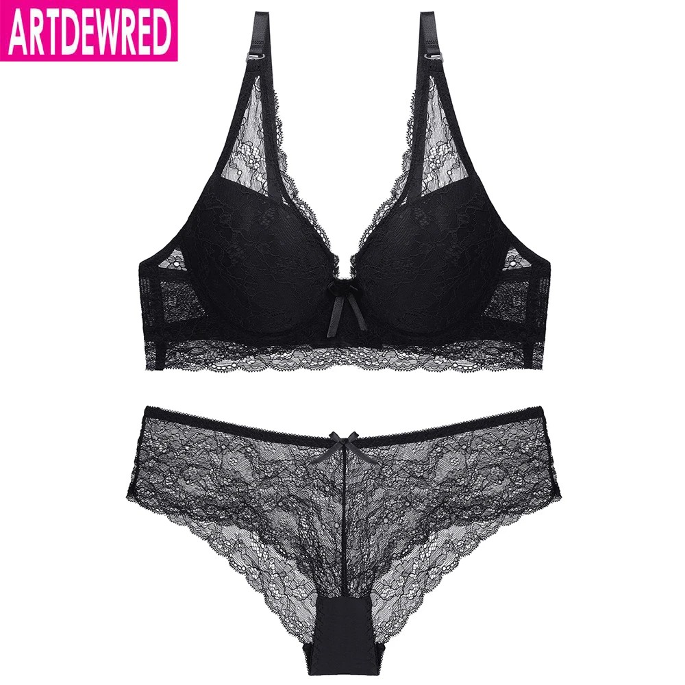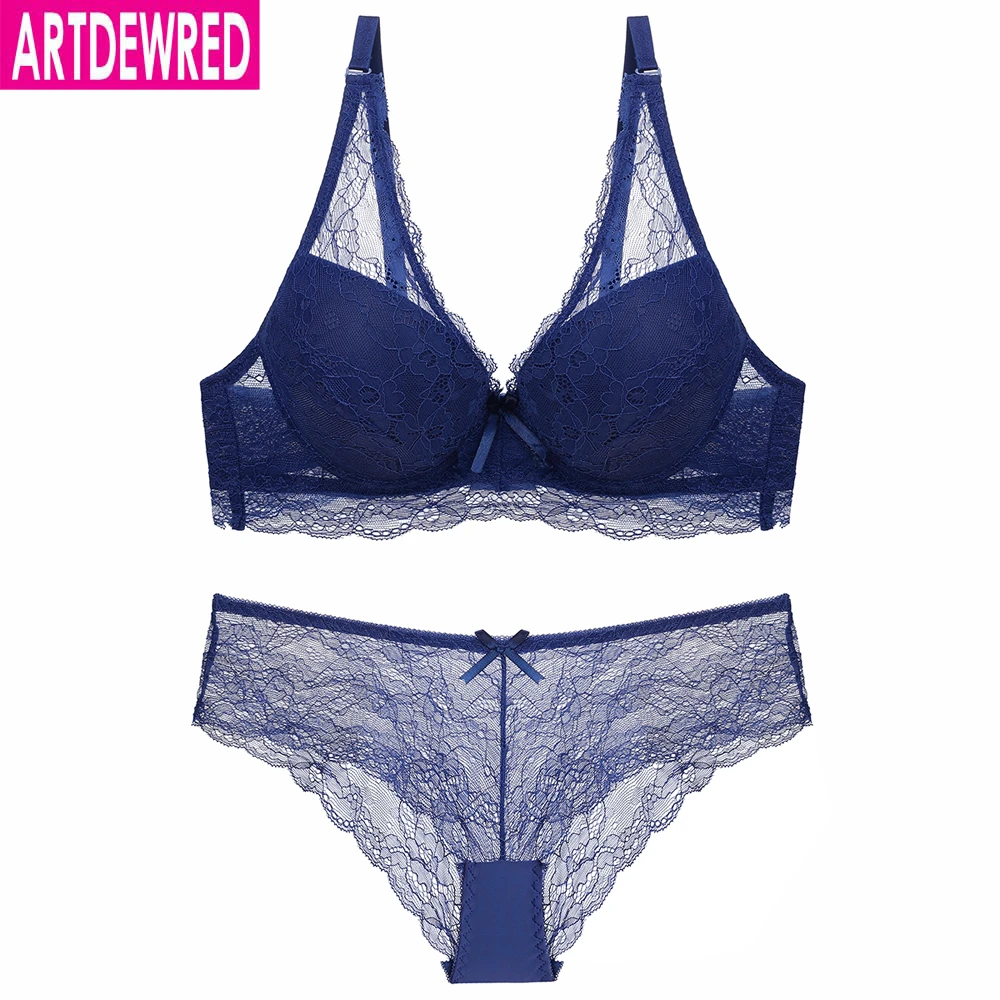 Комплект женского кружевного нижнего белья с чашками пуш ап|Бюстгальтеры| |