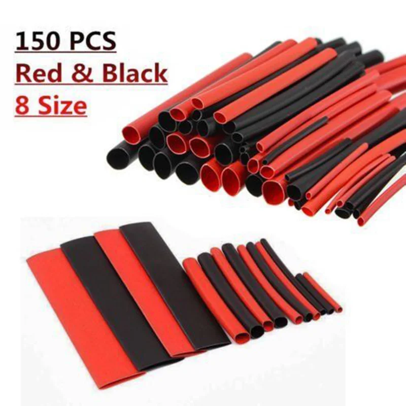 *150pcs Red Black 1~14mm 2:1 Ratio Heat Shrink Tubing Tube Sleeving Wire Wrap Kit