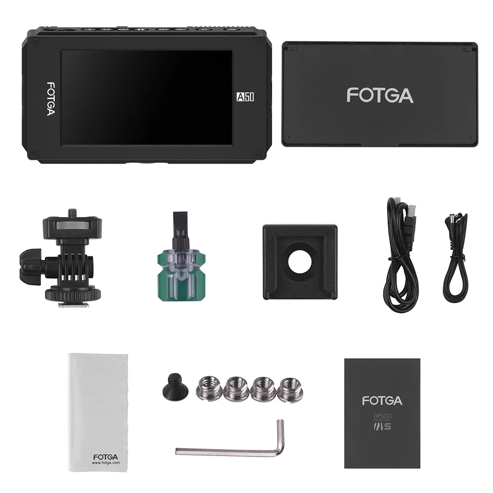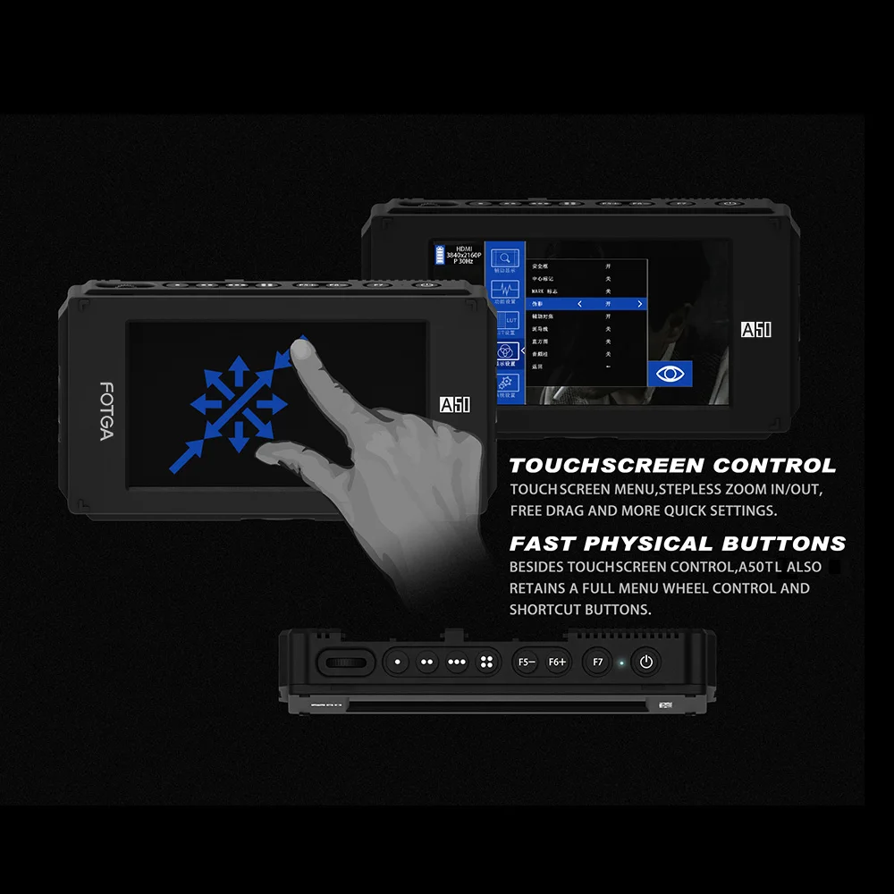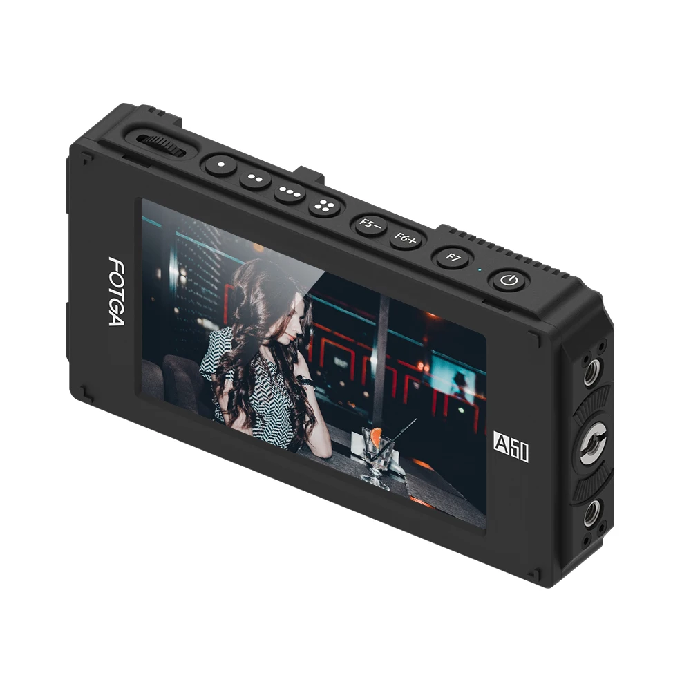 Support HDMI 4K input/output. (No SDI input/output for this model A50TL). 3.5mm headphone output. Compatible with almost all cameras and camcorders. USB port for firmware upgrade. Built-in audio input. Multiple connecting holes (1/4 inch, 3/8 inch, M6 and cold shoe connector).