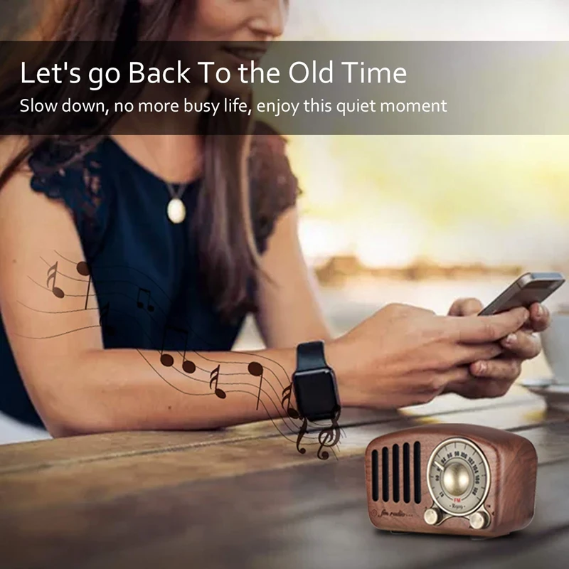 Винтажный радиоприёмник портативный-100% Натуральный Орех Деревянный Ручной Работы внешний вид. Его теплый цветной и винтажный стиль, который идеально сочетается с текстурой Вашей деревянной мебели вокруг вашего дома. Легкий прочный цельный и уникальный изысканный дизайн максимально повышает портативность. Бросайте или вешайте его в рюкзак для пеших прогулок, бросайте на велосипед или просто захватите его и отправляйтесь, идеальные наружные колонки для вечеринок, спальни, парка, двора, автомобиля, расслабляйтесь дома или в любом другом месте.