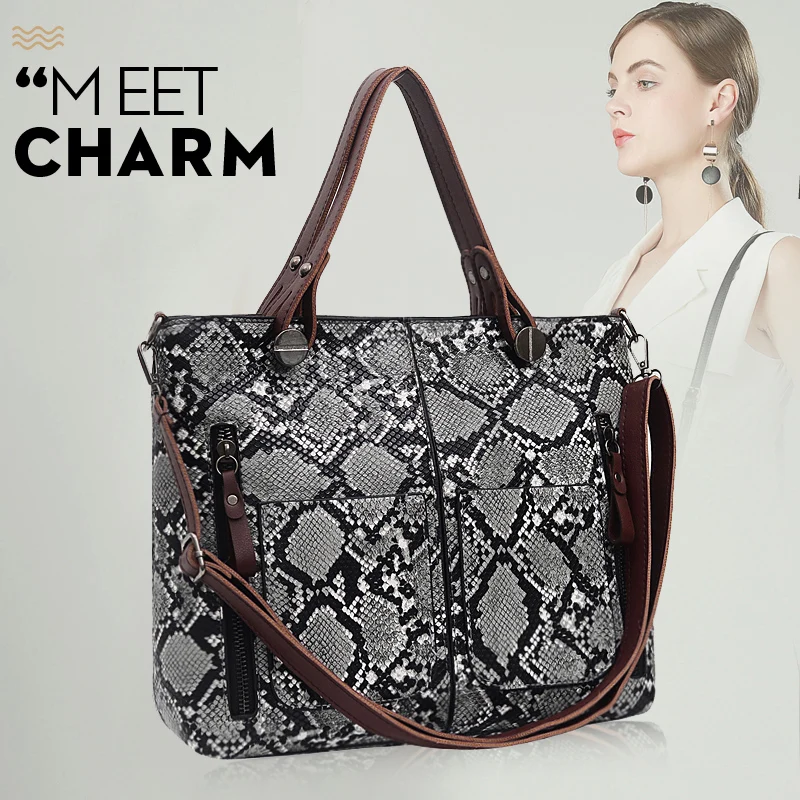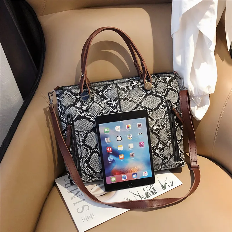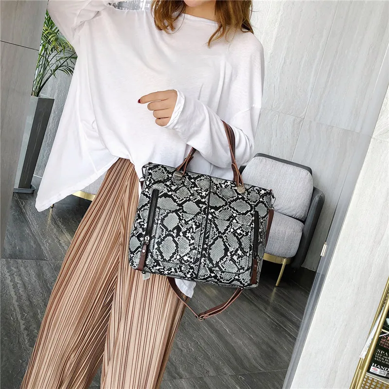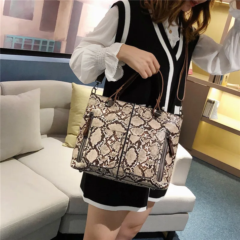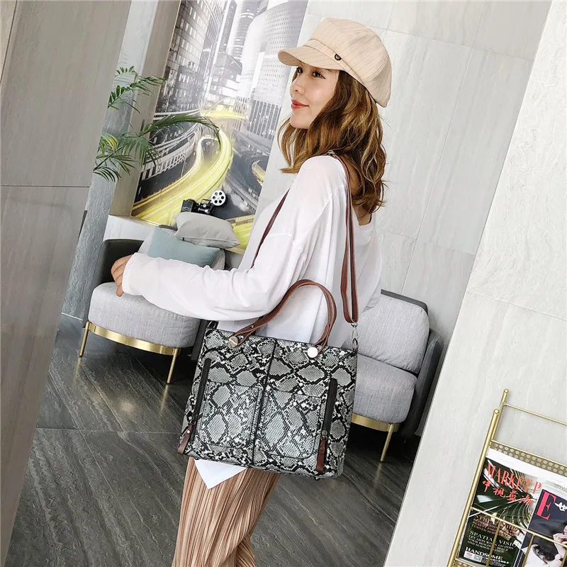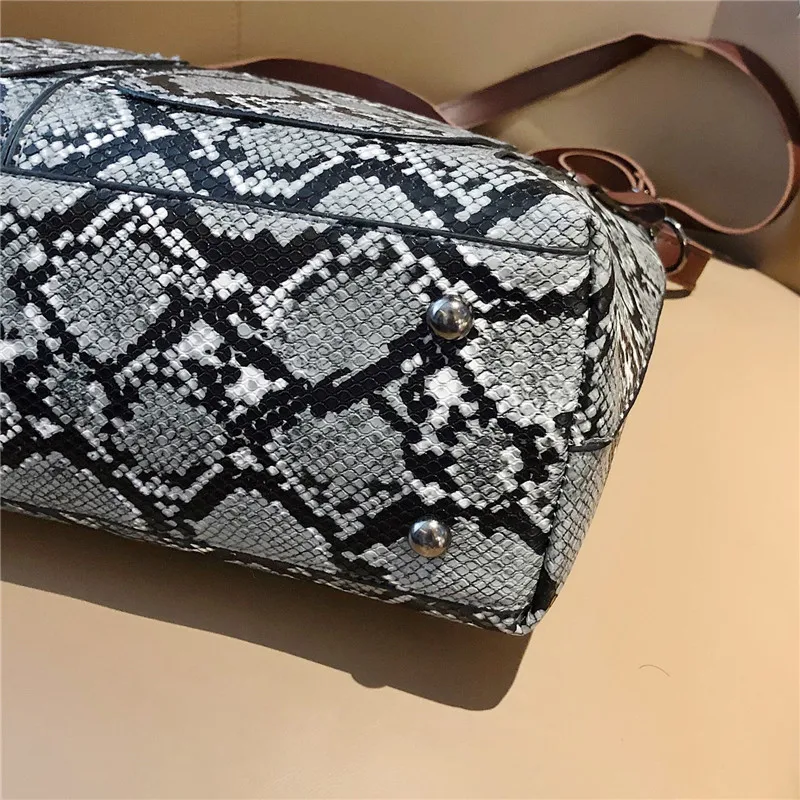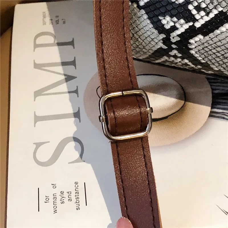 Повседневная сумка мешок под змеиную кожу женские сумки шикарные на ремне
