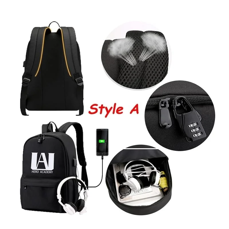 IMIDO My Hero academic рюкзаки Lumious USB зарядка аниме школьные сумки для девочек-подростков противокражная водонепроницаемая сумка на плечо