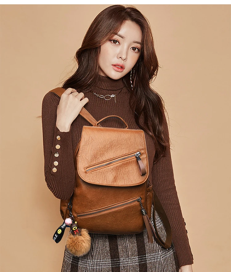 2019 Women Leather Backpack Female Anti-theft Backpack Pack bag for Teenage Girl Female Packbag Lady Mochilas Travel Sac A Dos