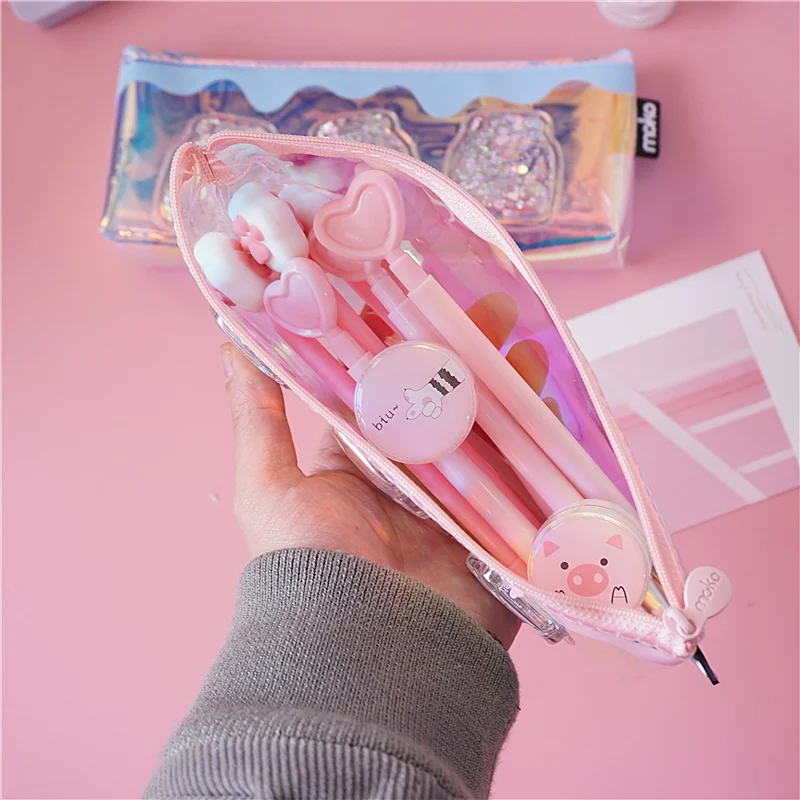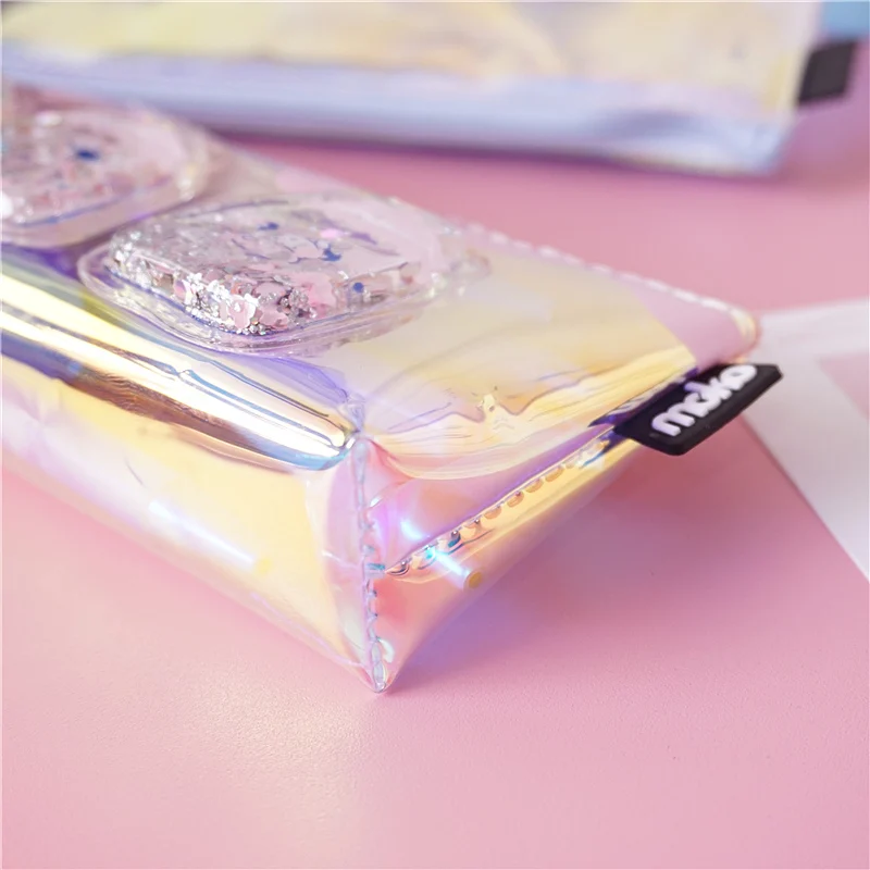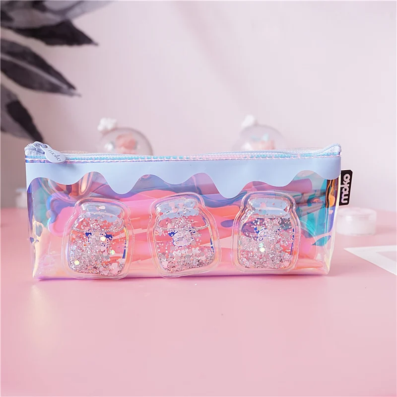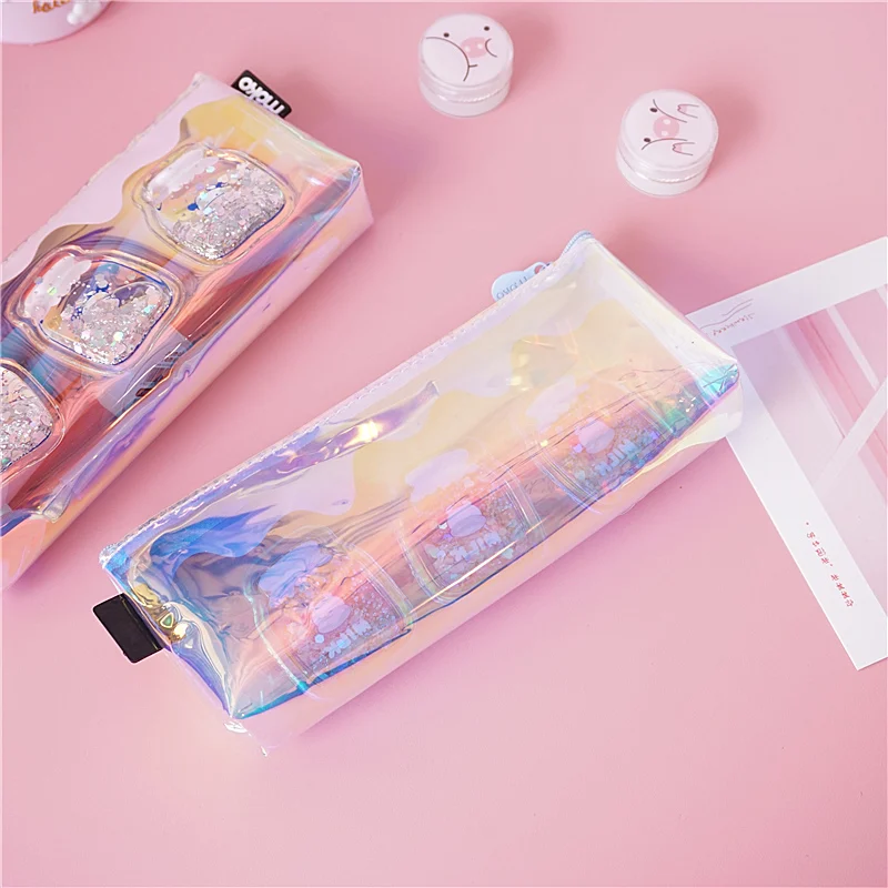 Милый чехол для карандашей с лазером, креативный чехол для молочной ручки, прозрачная сумка-карандаш большой емкости для девочек, подарок, школьные принадлежности, канцелярские принадлежности