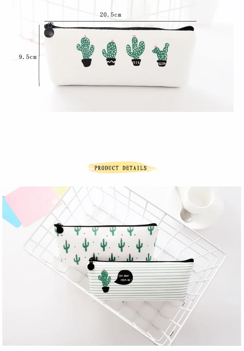 Креативный карандаш кактус сумка, небольшой свежий холст простой канцелярский ящик ручка сумка, Канцтовары для начальной школы